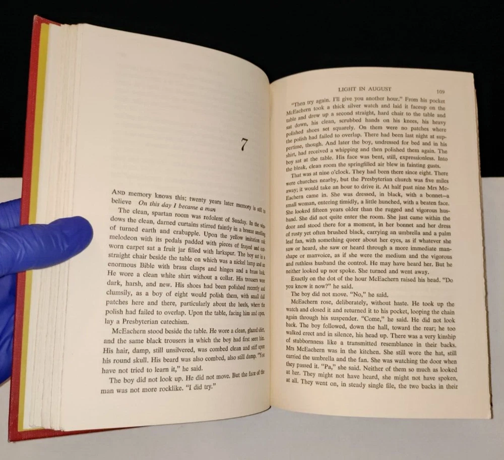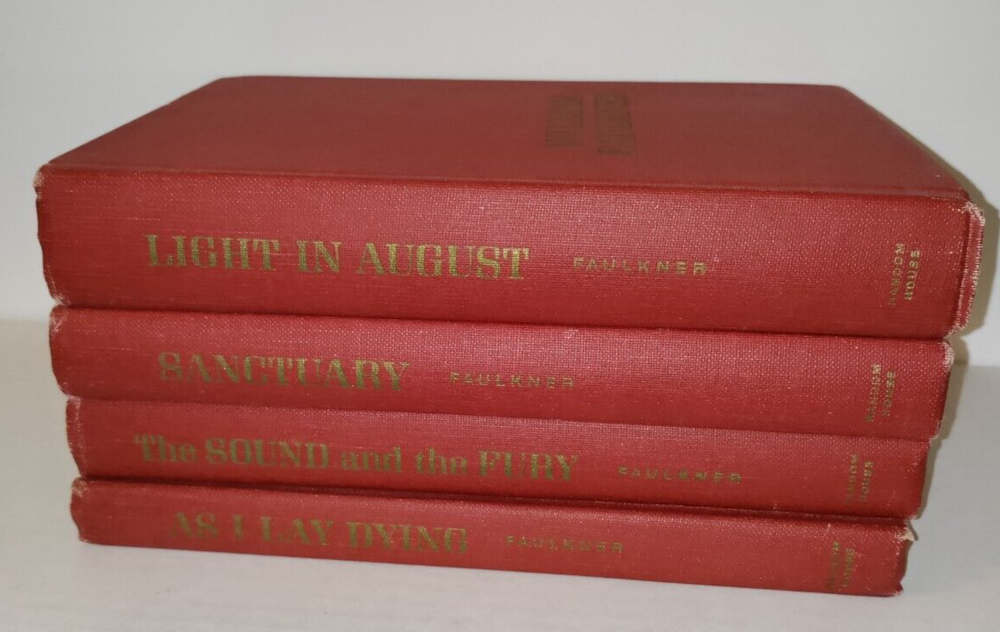 Vintage William Faulkner Book Set of 4 Hardcovers Random House Red Boards 1950s The Sound And The Fury , (1956) 249 pages Sanctuary , (1958), 250 pages Light In August , (1959), 378 pages As I Lay Dying , (1957), 182 pages Four Acceptable condition used vintage hardcovers; yellow pages; normal shelf wear, and etc. Thank You For Reading!!!! New books listed weekly!! SEE PICTURES FOR FURTHER DETAILS. PLEASE EMAIL ANY QUESTIONS BEFORE MAKING AN OFFER. NO RETURNS BASED ON CONDITION. boilerplate stuff: I am a lifelong comics nerd, and this is from my private collection direct to you in order to support my continued consumption of all things marvel, dc, dark horse, image, titan, IDW, and beyond. This has been read at least twice ,but I take great care to ensure they remain in great condition. I am reluctant to mark anything as NM because even brand new off the wall comics often have blemishes and imperfections such as spine crease and dings. These are multiple read copies in very fine condition. All comics are bagged and boarded and shipped with appropriate packing material to ensure the fidelity of the merchandise. The PICTURES in this item are of the EXACT SAME ITEMS you will receive if won. I will report any nonpaying winners. All items are AS IS. No refunds. All sales are final. No international shipping. Please ask questions before making a bid. 5 stars please, I am doing everything in my power to make sure my customers are satisfied with their shopping experience. Any concerns problems, issues or trouble please contact me and allow me to help matters before leaving negative feedback. Payment is expected within 3 days of purchase via PayPal. After receiving payment I normally ship within 2-3 days (Mon-Sat). I use USPS priority shipping and carefully package items with the appropriate boxes, packing materials, bubble mailer envelopes, and etc as is appropriate to safeguard these valuables during transit. Be aware of shipping costs, Ebay fees to the seller, charges by paypal for their service, packing materials, the fuel used to transport the product to the carriers, and other variables can eat into the profit of these transactions sometimes up to 50% of the possible value provided by the piece. I have done my best to provide quality items on auction style listing; I am a single private seller trying to provide high quality items at a bargain level. Remember next time I may be the customer so please be courteous and respectful in your dealings and I will strive to do the same. Nonpayment will be reported. Thank you for your patronage, and have a nice day.