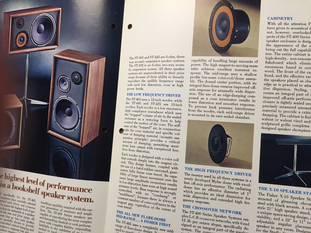 Up for sale is a brochure put out by Fisher Radio featuring The Fisher "400" Series Speaker System dated 1973. Measures 8 1/2" x 11". Very good condition, shows a little wear. Contains 4 pages in all. This is an original document. I pack for safe shipment. I charge a shipping fee so those that want to purchase more than one item can save on combined shipping. Track Page Views With Auctiva's FREE Counter
