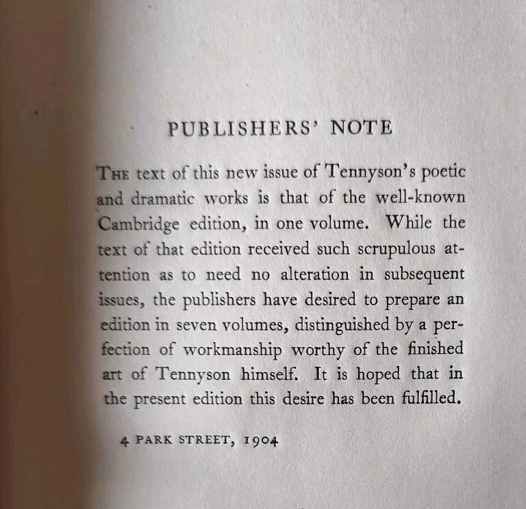 THESE ARE THE "RIVERSIDE" EDITIONS. I AM NOT AN EXPERT IN ANTIQUE BOOKS BUT THESE BOOKS ARE IN VERY NICE CONDITION. SOLID, CLEAN, ONLY THE SLIGHTEST CORNER RUBBING. THE SET INCLUDES 7 VOLUMES. THE DATES INSIDE RANGE AS FOLLOWS: VOLUME 1 - 1904 AT THE END OF THE PUBLISHER'S NOT VOLUME 2 - NO DATE VOLUME 3 - 1855 VOLUME 4 - NOT DATE VOLUME 1880 VOLUME 6 - 1875 VOLUME 7 - 1884 THANKS FOR YOUR INTEREST, WE SHIP DAILY!!
