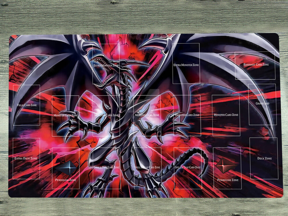 This playmat is a must-have for any TCG fan! The Red-Eyes Black Dragon design looks amazing, and the high-quality cloth surface feels smooth for card play. The natural rubber base keeps it firmly in place, and the included mat bag is a nice bonus. Love that you can customize the zones—great for different game styles. Perfect size for dueling, and the print quality is crisp. Highly recommend for collectors and players alike!