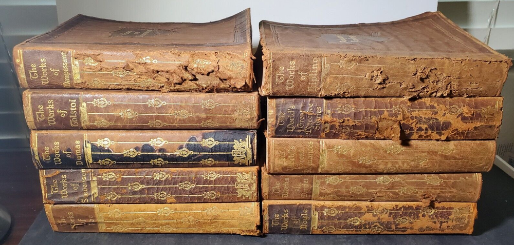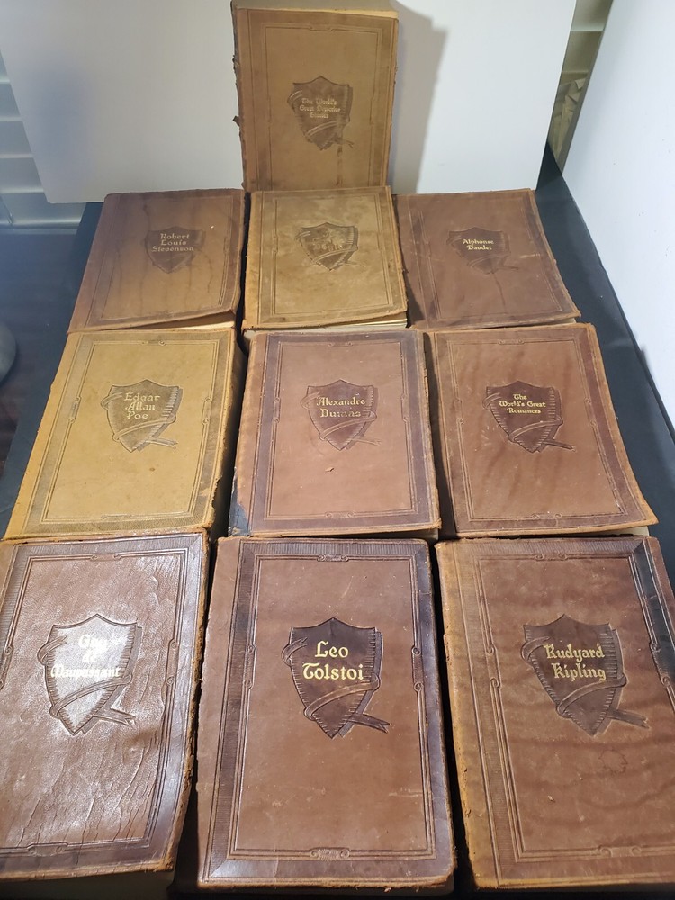 Walter J. Black Leather-Bound The Works Of Book Collection Of 10 Genuine Leather The Works of Edgar Allan Poe Robert Louis Stevenson Alexandre Dumas Rudyard Kipling Leo Tolstoi A. Conan Doyle Guy De Maupassant Alphonse Daudet The World's Great Romances The World's Great Detective Stories Please see pictures and email me if you have any questions.
