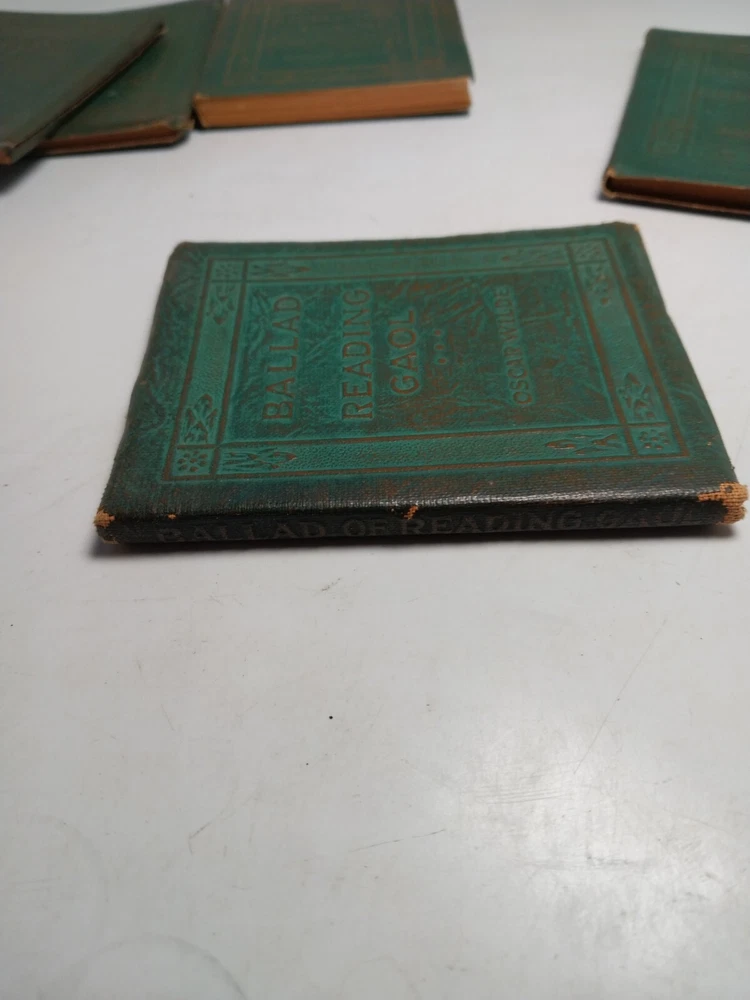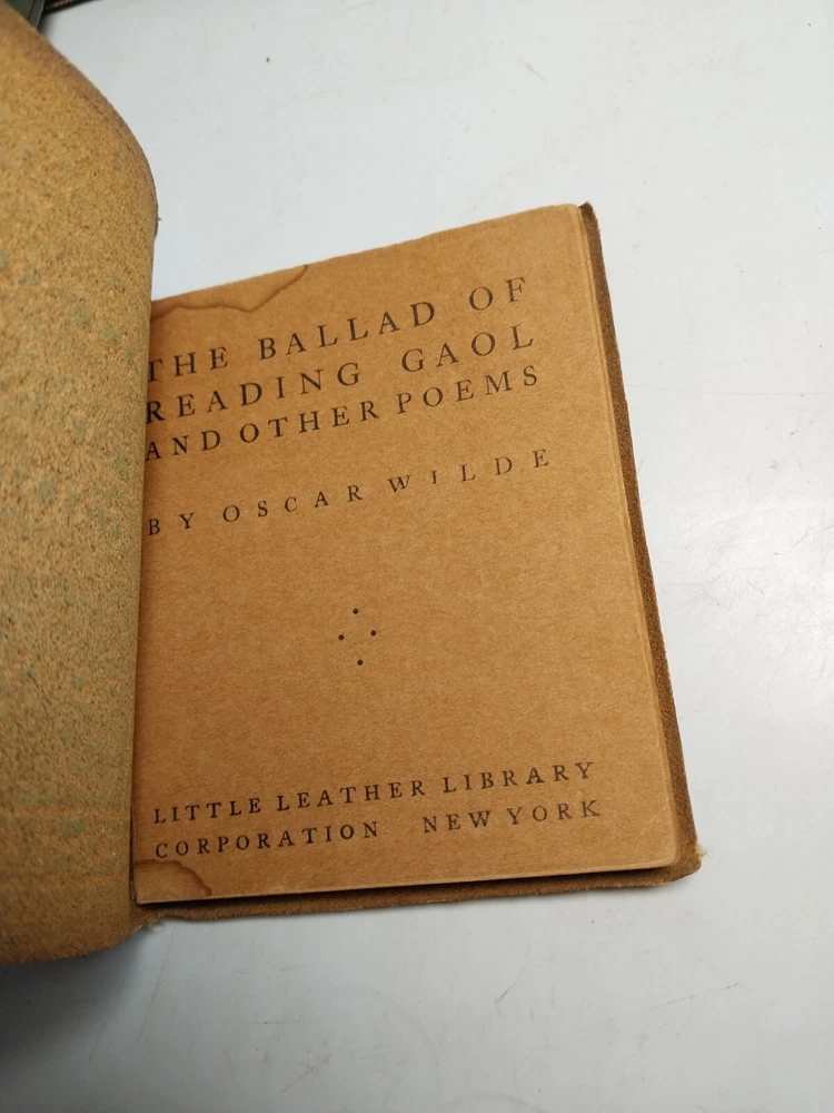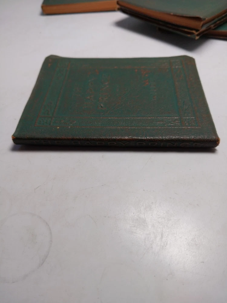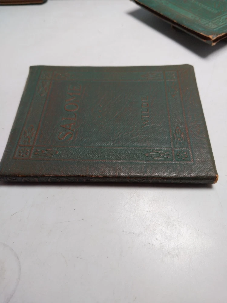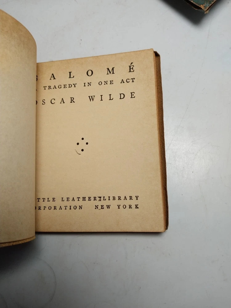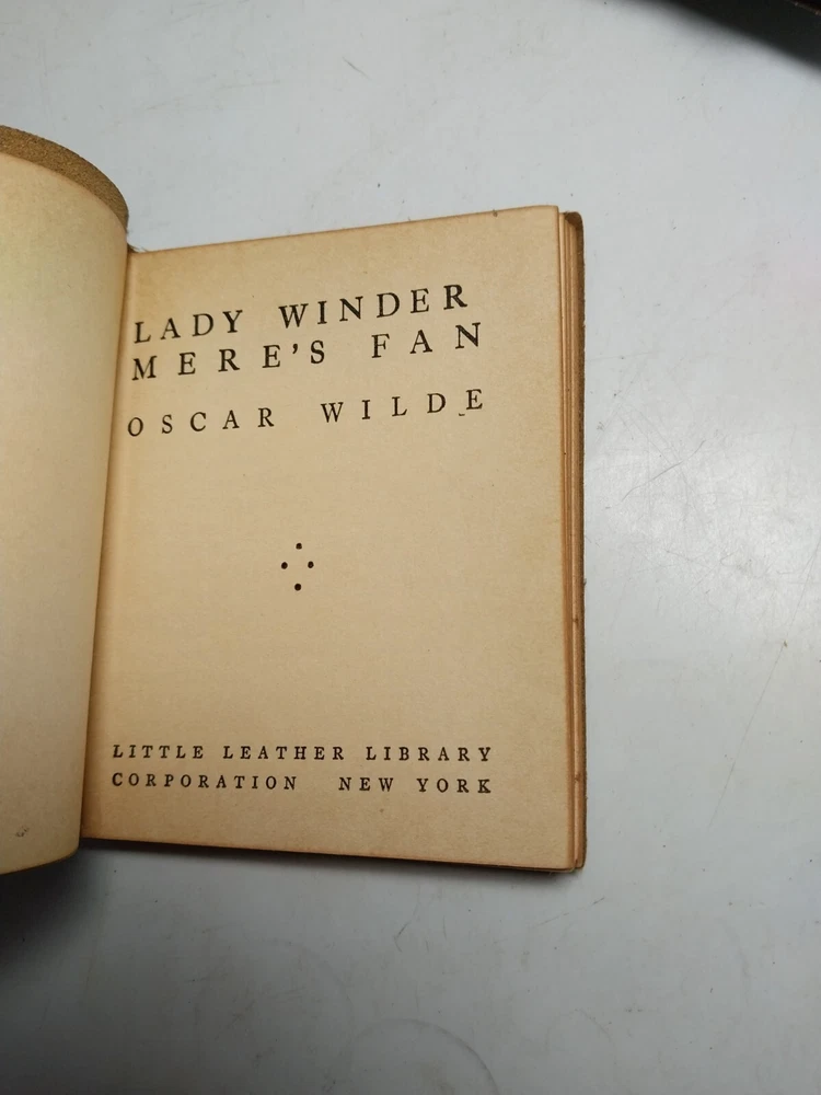 Wilde Windermer's Fan Earnest Salome Reading Goal Little Leather Library Book Set Book set measures approximately 3" x 4" and is in good used condition with some signs of age, use, and wear; age related toning to pages, please see photographs for condition details.