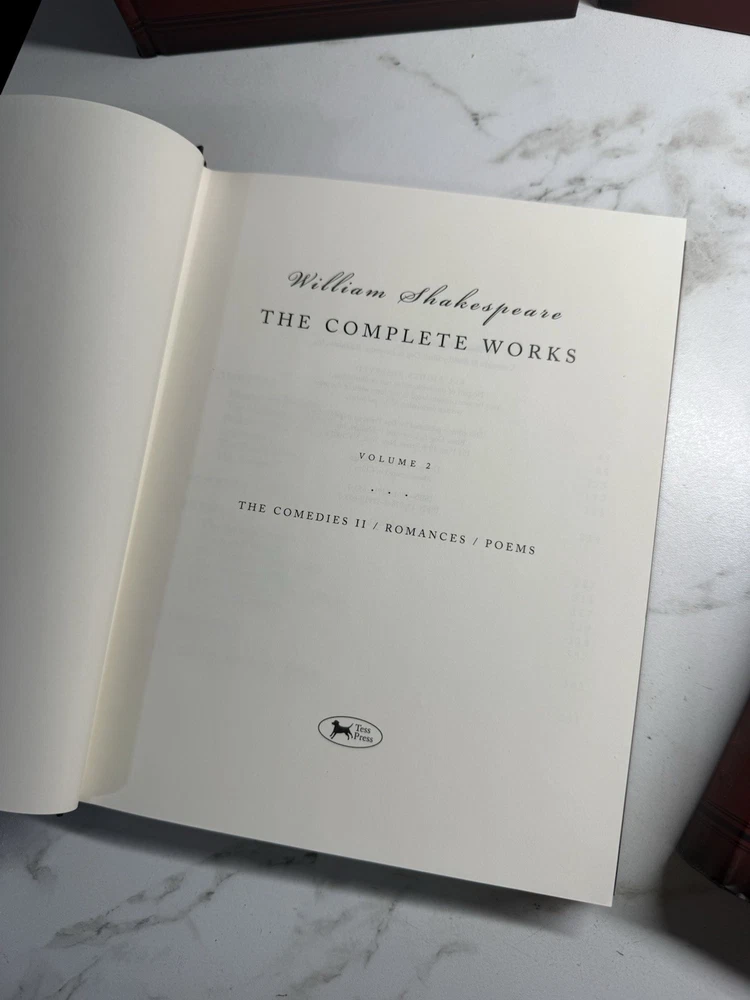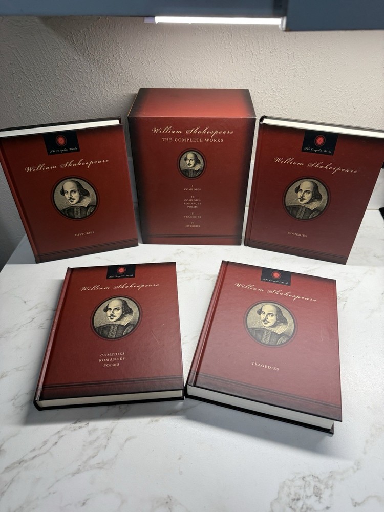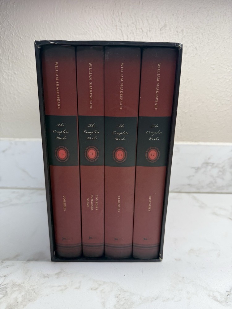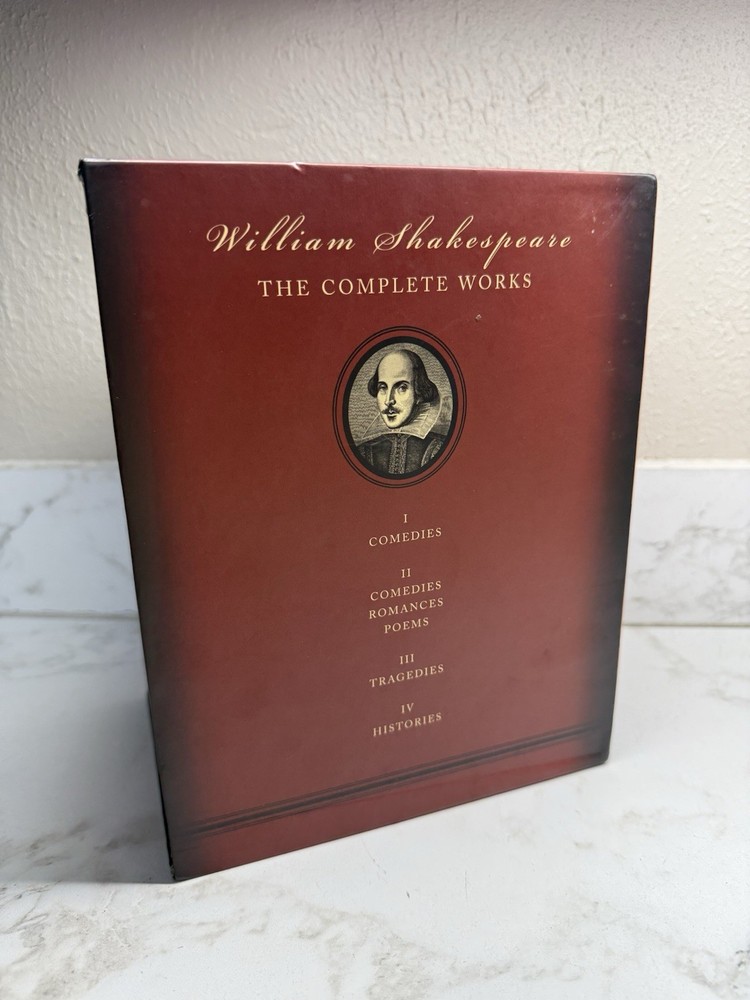 Immerse yourself in the world of drama with this 4 volume hardcover set of William Shakespeare's complete works. Published by Tess Press in 2006, this first edition set comes in a slipcase for added protection. Delve into the classics and discover why Shakespeare's works are timeless.