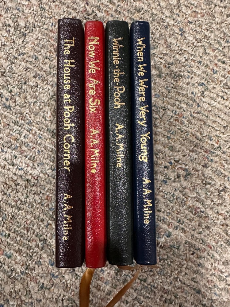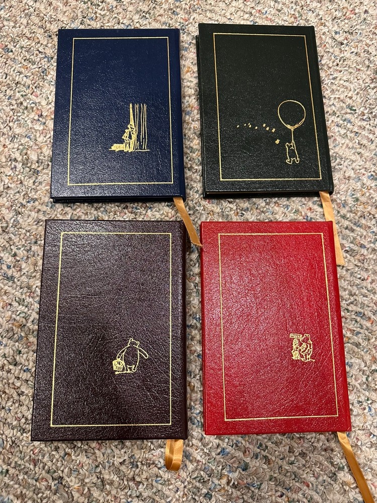 Winnie-the-Pooh EASTON PRESS Complete Set of 4 Leather, A.A. Milne, Great condition, Smoke free home their entire lives. Please see detailed pictures of all edges of the books for exact condition. Book titles include: When We Were Very Young Winnie-the-Pooh The House at Pooh Corner Now We Are Six This was part of my 92-year-old friends' collection. Well cared for!