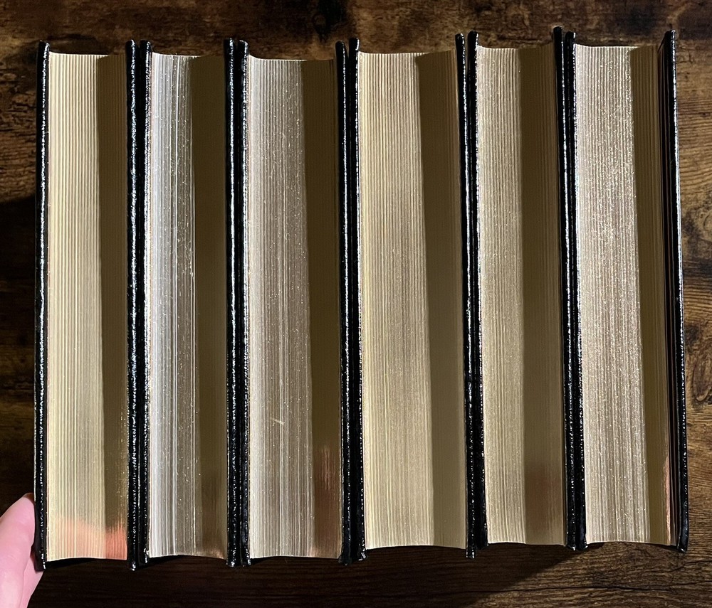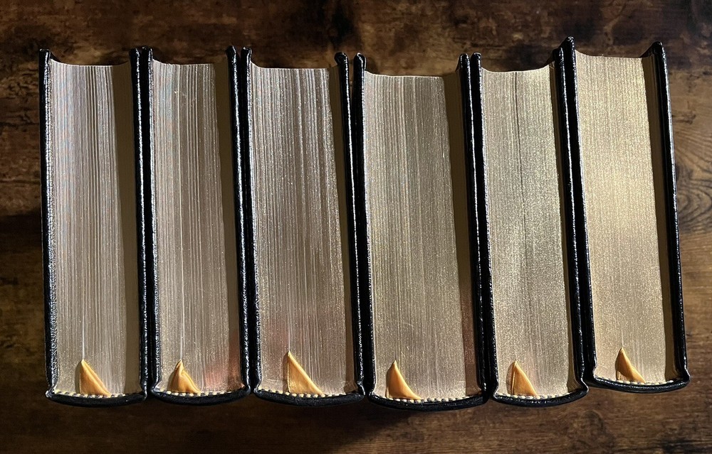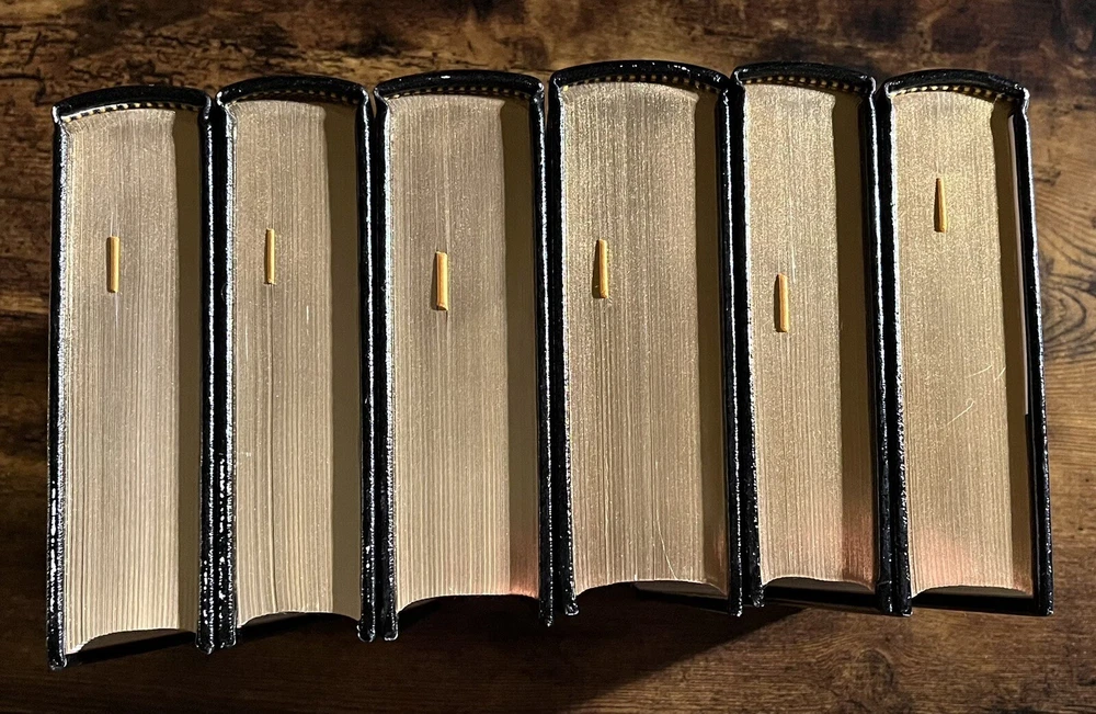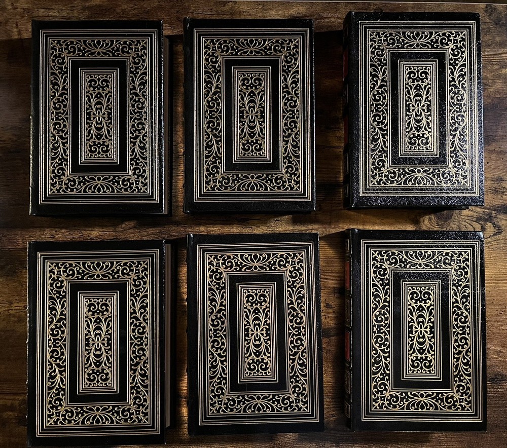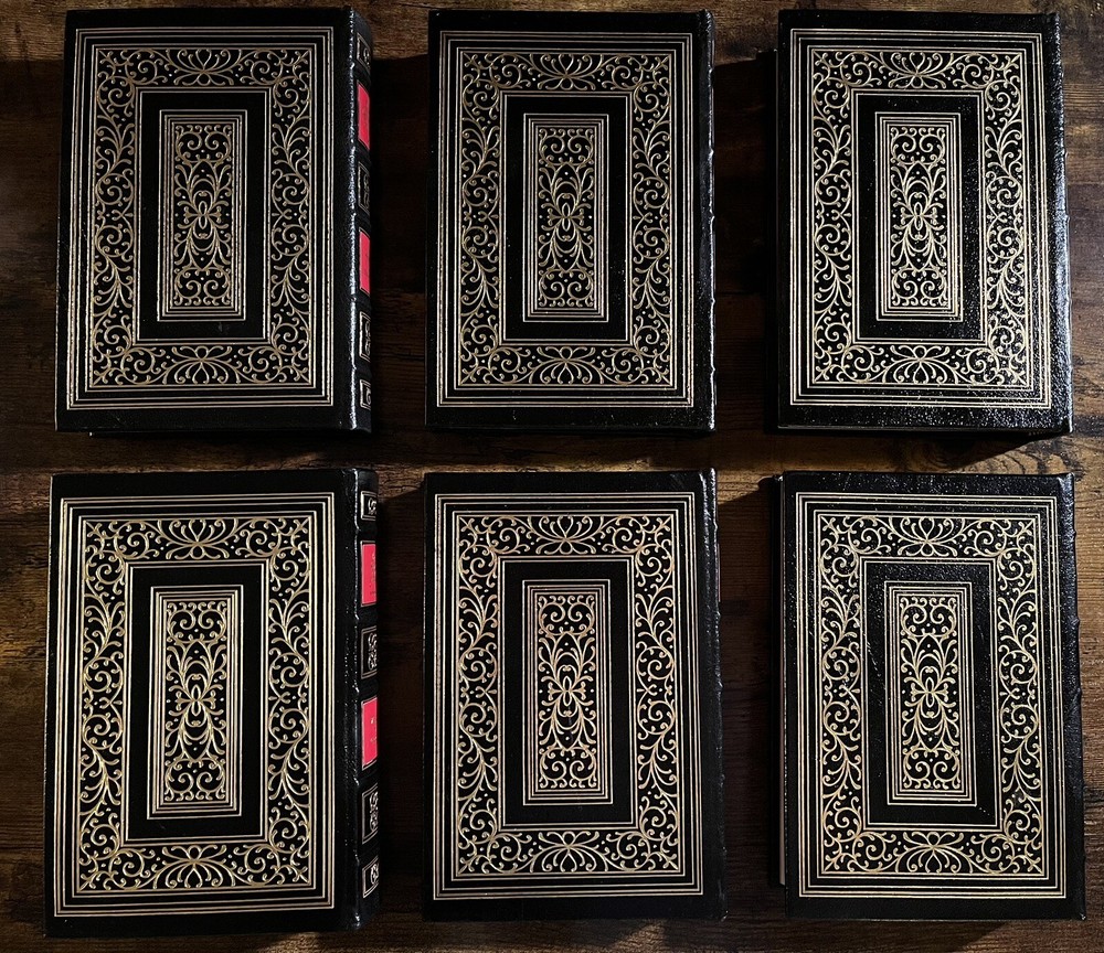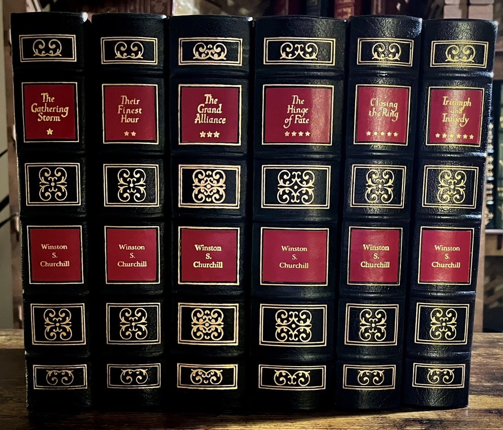 This six-volume set from Easton Press is a must-have for collectors and history enthusiasts alike. Authored by the legendary statesman Winston Churchill, these books cover the significant events of World War II and the events leading up to it. The luxurious leather binding and special attributes make it a collector's edition. Published in 1989 in Norwalk, Connecticut, the language used in the set is English and the books' region is North America. This limited edition set is a valuable addition to your collection. There is some small damage to the upper portion of the spine of the 5th volume “Closing the Ring”. Aside from this the books are in excellent clean condition, as pictured.