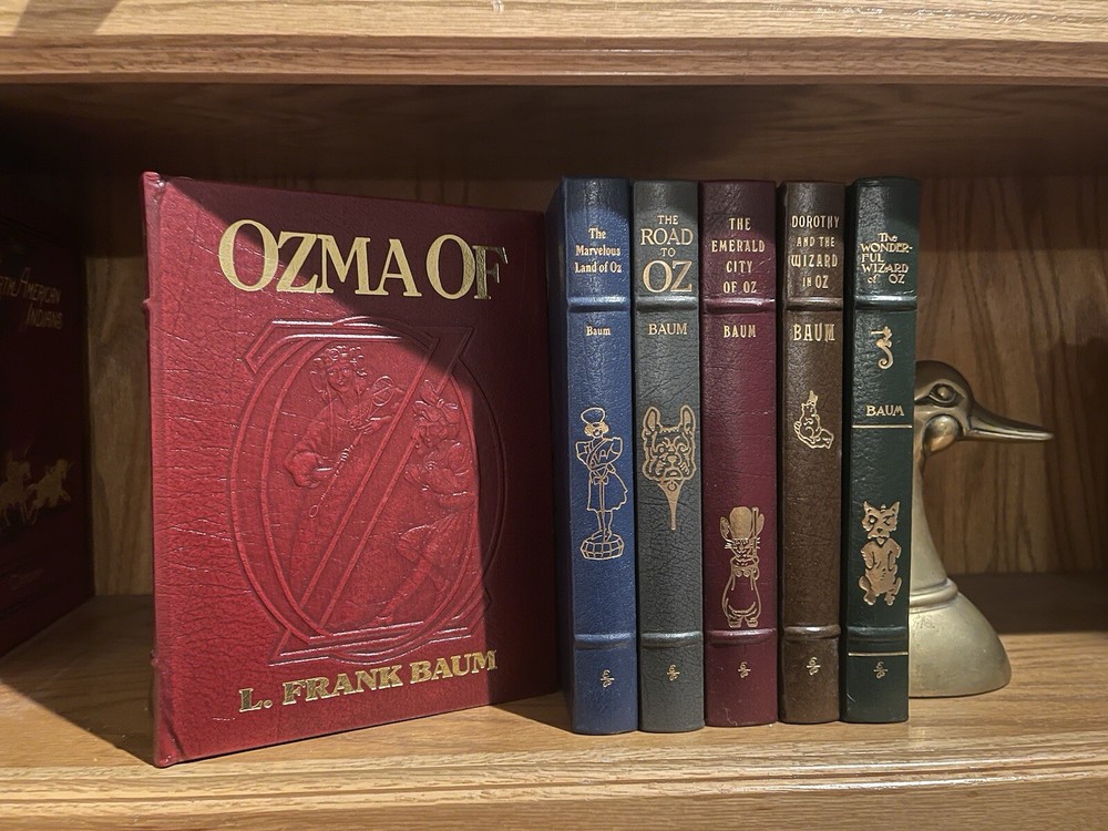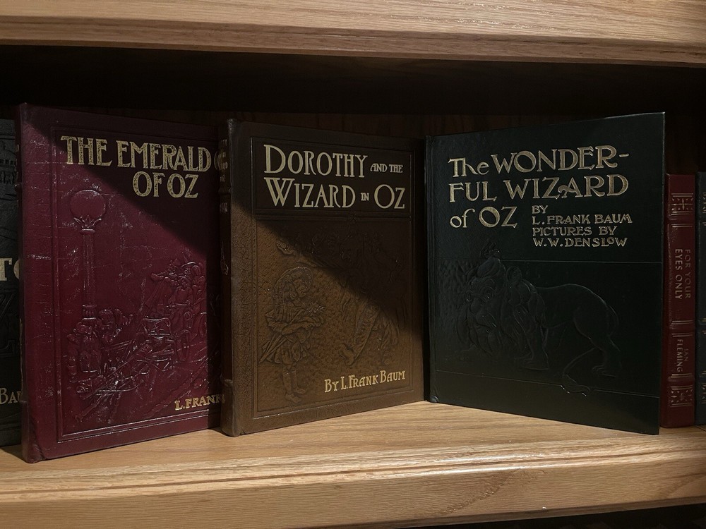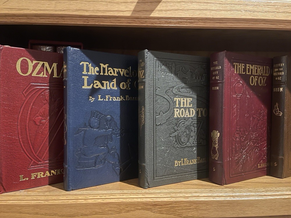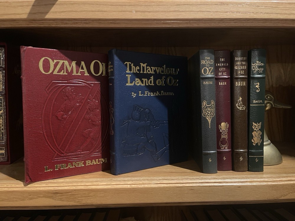 This 6-volume set of the classic children's book, Wizard of Oz, is a collector's dream come true. The books are bound in high-quality leather and feature beautifully illustrated carvings on the covers. This limited edition set is a must-have for any fan of the beloved author, L. Frank Baum, or the iconic characters of the Oz universe. The books are in excellent shape and have been well-maintained by the publisher, Easton Press. This set is a great addition to any collection of rare or collectible books. With its unique topic and subject, this set is sure to be a conversation starter. Don't miss your chance to own this amazing piece of literature. The Wonderful Wizard of Oz • The Marvelous Land of Oz • Ozma of Oz • Dorothy & the Wizard of Oz • The Road to OZ • The Emerald City of Oz L. Frank Baum’s greatest books of Oz, featuring spectacular reproductions of the artwork from the rare First Editions.