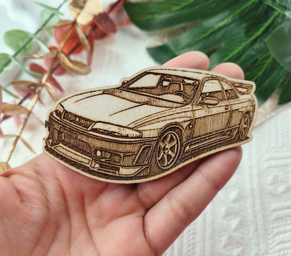 Rev Up Your Fridge with Nissan Skyline GTR33 Magnet Introducing the perfect addition to your fridge or magnetic board - a stunning Nissan Skyline GTR33 plywood fridge magnet! Measuring at approximately 3.5 inches by 1.5 inches, this eye-catching magnet is a must-have for any car enthusiast or JDM fans. Crafted from high-quality plywood, this magnet features intricate details that showcase the iconic design of the Skyline GTR33. With its sleek curves and distinctive headlights, this magnet is sure to draw attention and admiration from anyone who sees it. This Skyline GTR33 plywood fridge magnet is a must-have for any JDM fan, and makes a great gift for friends and family who share your passion for this legendary sports car. So add this exclusive piece to your collection today and enjoy the beauty of the Skyline GTR33 every day, right on your fridge! Whether you're using it to hold up important notes or simply displaying it for its beauty, this GTR33 plywood fridge magnet is a unique and stylish way to show your love for one of the most iconic sports cars of all time. Don't miss out- order yours today!