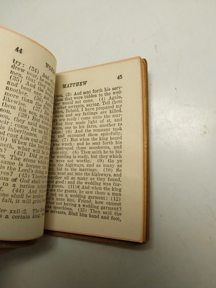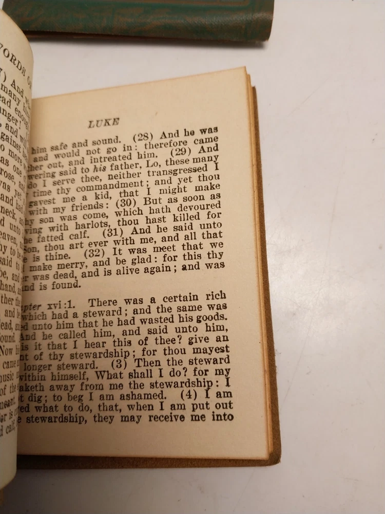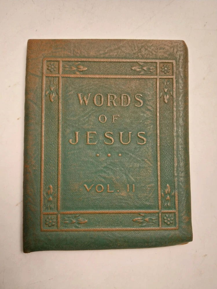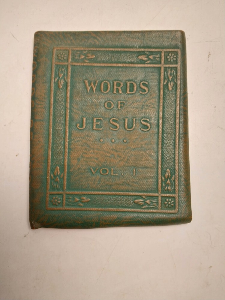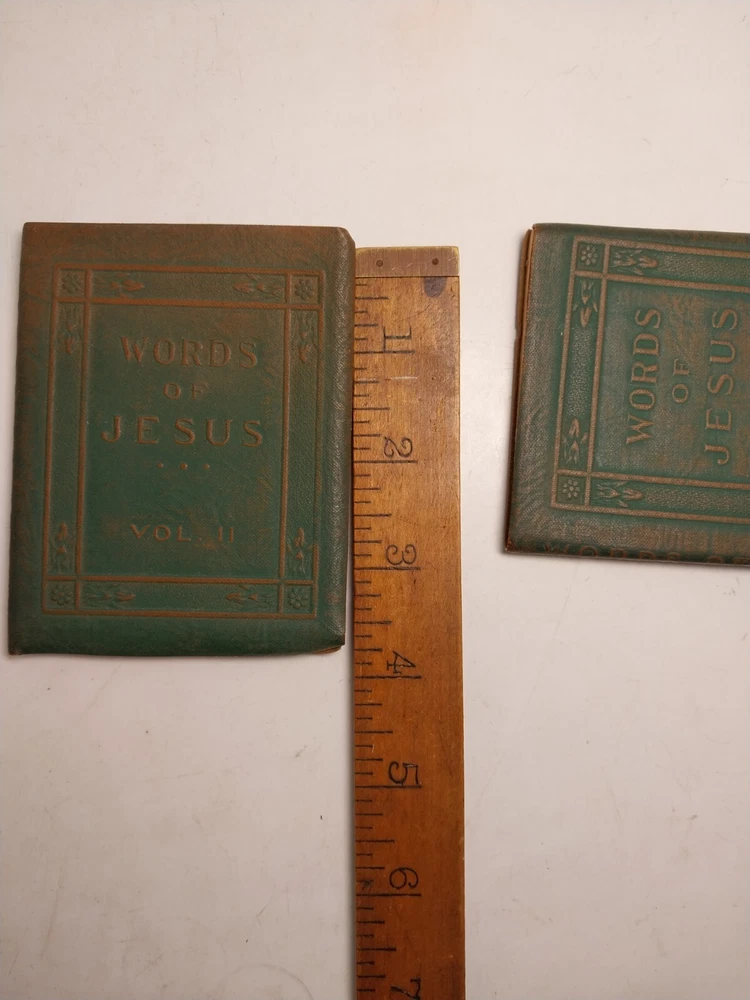 Words of Jesus vol 1&2 Bible Verse Little Leather Library Redcroft Miniature Book Set Book set measures approximately 3" x 4" and is in good used condition with some signs of age, use, and wear; age related toning to pages, please see photographs for condition details.