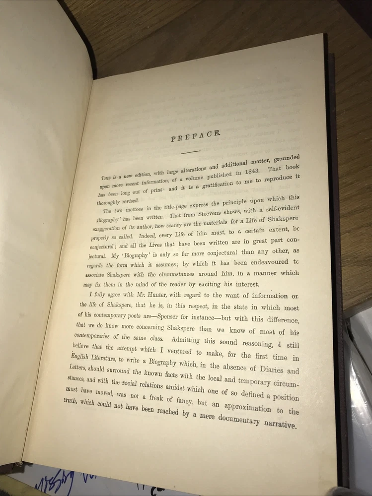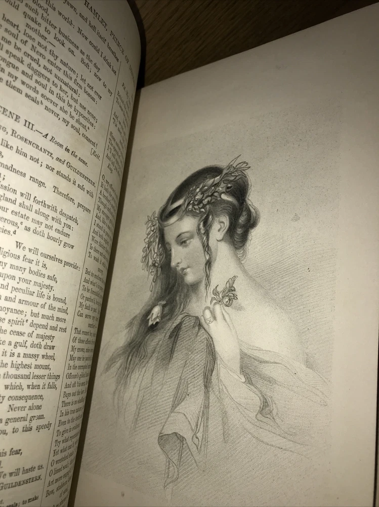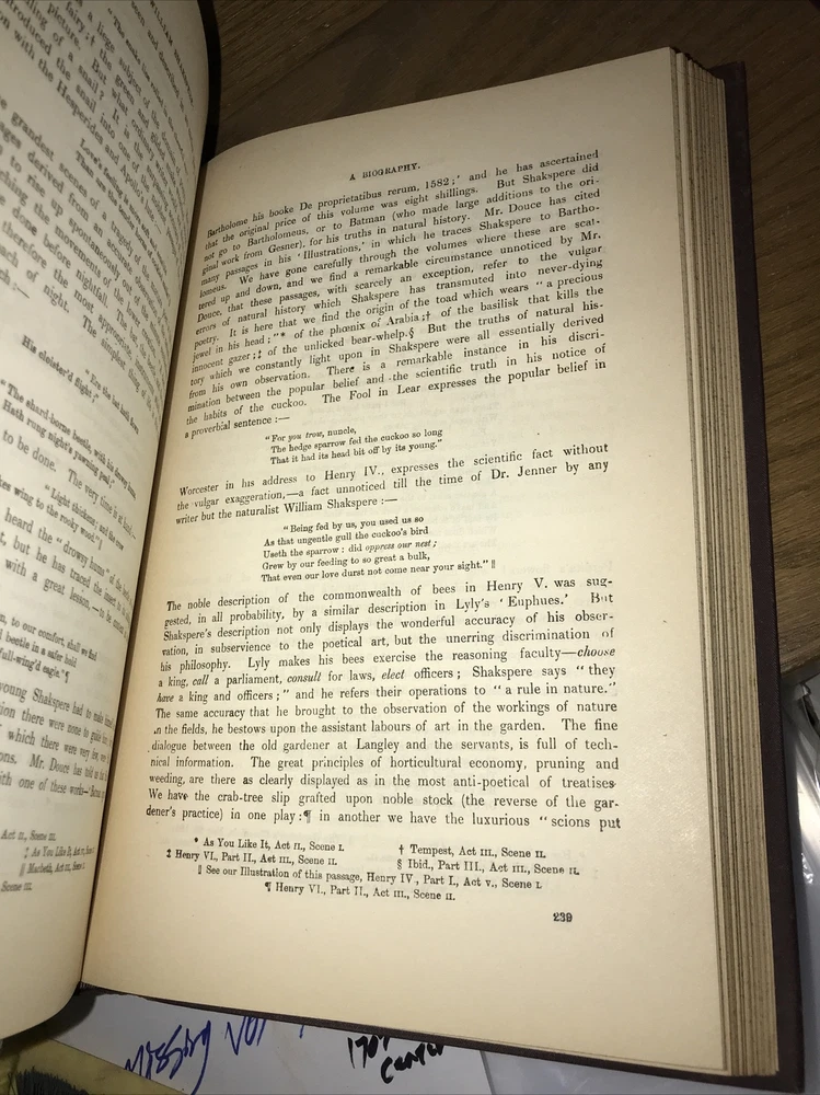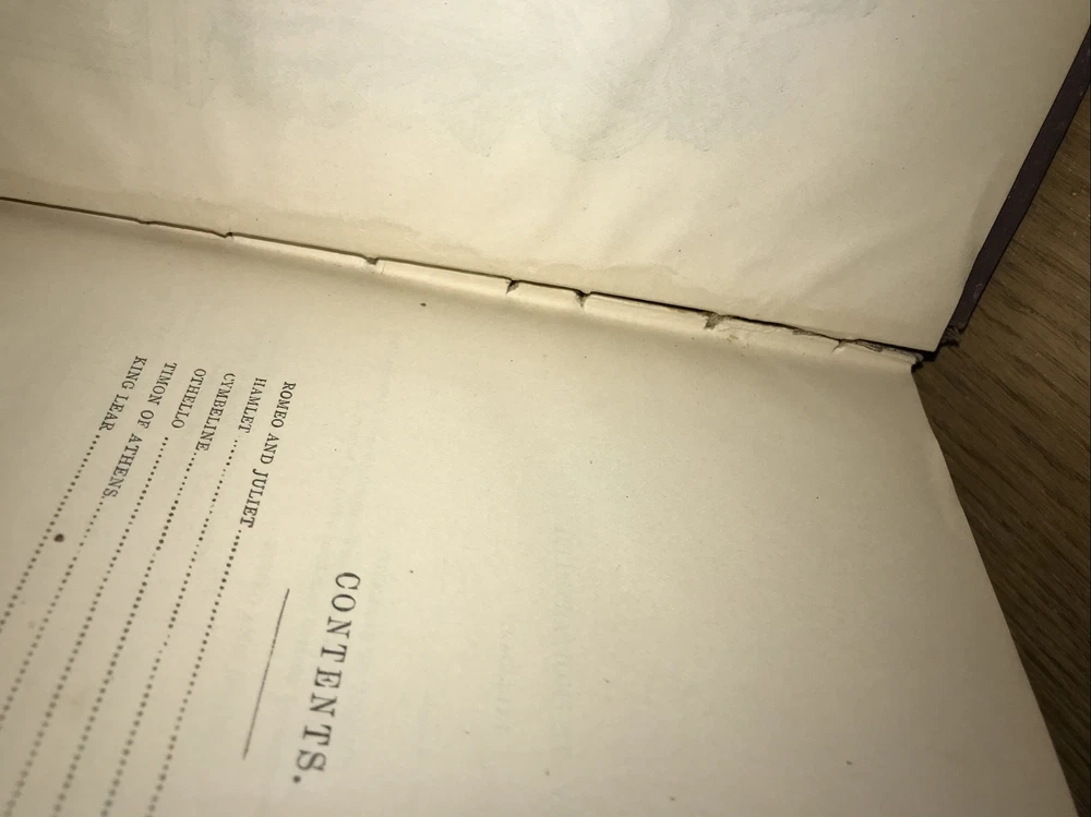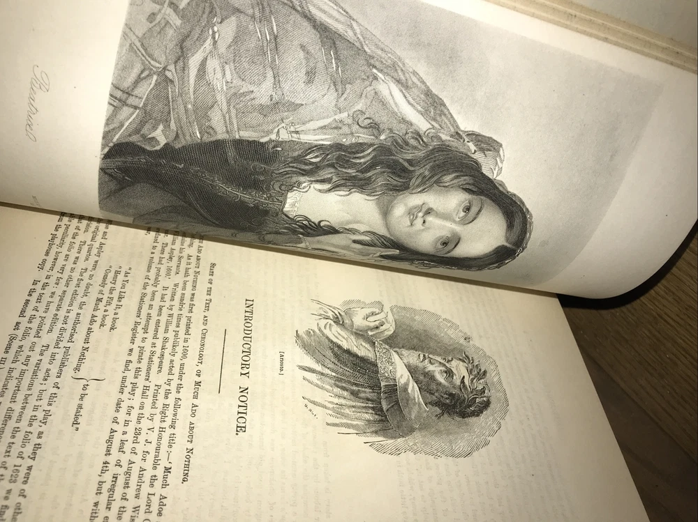 Complete in 8 volumes. Large volumes. Ten inches tall. Quality paper is still fresh, not brittle. Not dated on the title page. Published circa 1890-1910. Charles Knights’ pictorial Shakespeare. Heavily illustrated. The bindings are original. Generalized abrasion to the spines. The most wear is to the spines, they have a lot of the gilt abraded. Old 2- price in pencil on end papers. No owner names. Some generalized usage wear. It’s still a nice old set of Shakespeare. Still good as a reading set. The paper is good. I showed pictures of the worst condition. These will be well protected for shipping via Priority Mail. 2023.04