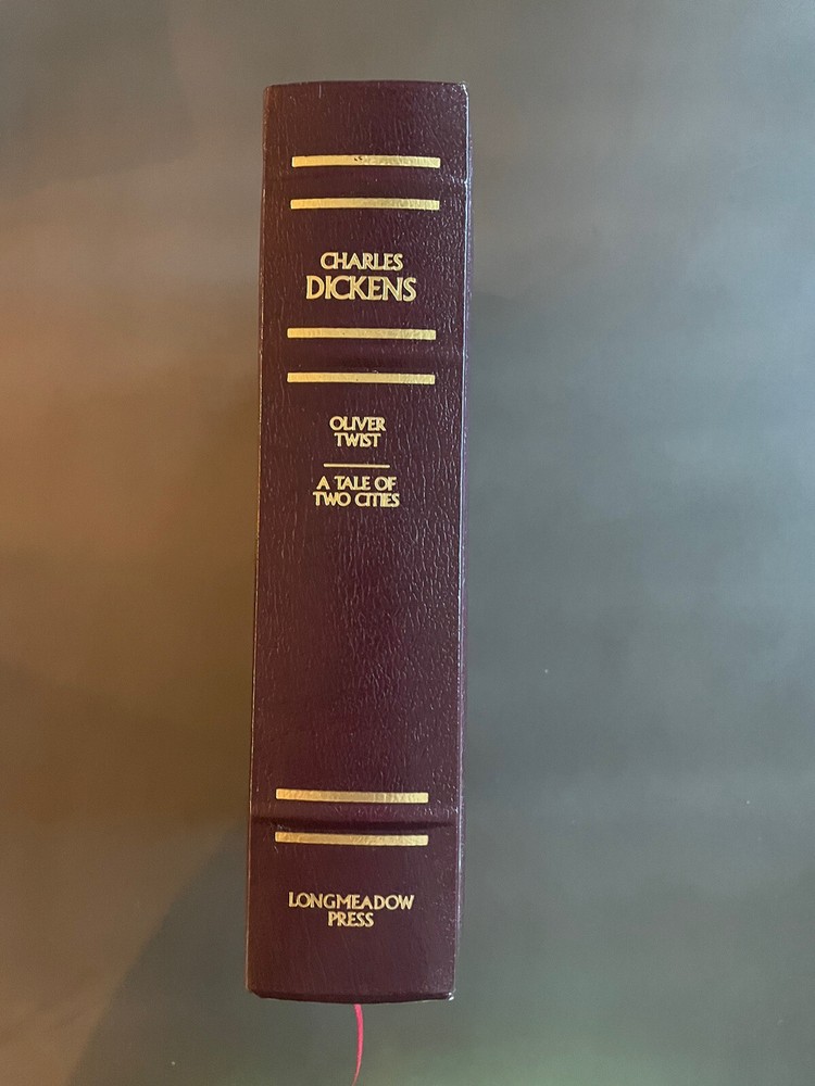 Works of Charles Dickens (1990 hardcover) Oliver Twist, A Tale of Two Cities .... Shoes some wear and rubbing. Some scratching to gold edge of pages. Has writing (personal message) on front inside cov...