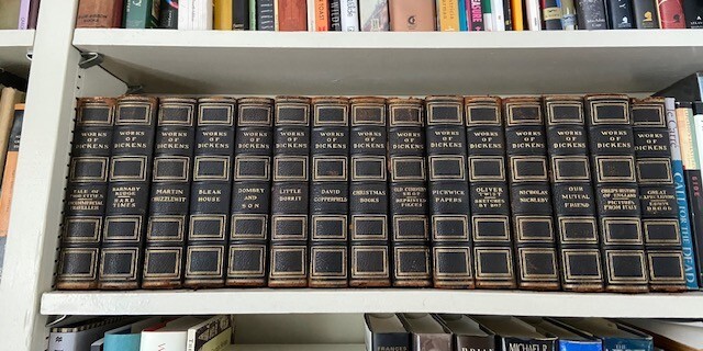 Edition De Luxe, The Works of Charles Dickens, The Jefferson Press, Boston and New York Complete volume leather bound set, top edges gilt, engraved title-page, illustrated, marbled paper. Titles include classics such as Great Expectations, David Copperfield, Bleak House, Oliver Twist, Tale of Two Cities. Fair condition, consistent with age: scuffing to corners of boards, rubbed spots on spine (please see photos).