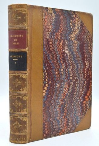 eBay template The Works of William Prescott by William H. Prescott Routledge, Warne and Routledge; London, 1859-1870. Hardcover. Complete 15 Volume Set. Set consists of: Conquest of Pero (3 books – 334pp., 357pp., 334pp.), Philip the Second (3 books – 466pp., 468pp., 396pp.), Conquest of Mexico (3 books – 413pp., 407pp., 444pp.), Charles the Fifth (2 books – 552pp., 587pp.), Ferdinand and Isabella (3 books – 452pp., 455p., 487pp.) and Historical Essays (1 book – 501pp.). A Very Good, three quarter leather binding with marbled boards, red and black labels with gilt lettering on spines, some newer labels, ornate gilt design on spines, marbled endpapers/pastedowns and text block edges, binding sturdy and intact, some handling/scuffing to boards, rubbing to board and spine edges, few board corners exposed, some age toning to pages, most Volumes with tissue protected frontis-illustrations, leather a bit dry, small chip to black label Volume 1 of Philip the Second, Volume 1 of Conquest of Mexico has a small chip to black label and red label is peeling away from spine, top text block edges darkened, bit of discoloration/sunning to spines. A nice and clean set. 16mo[sextodecimo or approx. 4.75 x 7 inches]. We pack securely and ship daily with delivery confirmation on every book. The picture on the listing page is of the actual book for sale. Additional Scan(s) are available for any item, please inquire. 111111112005 SHIPPING: Domestic Media Mail is an additional $5.00. Domestic Priority S&H is an additional $10.00 per item. All domestic orders are moisture protected and shipped in either a well padded box or depending on price/size of book it will be cardboard sleeved & shipped in a well padded bubble envelope. The handling includes Delivery Confirmation on every domestic order which will be emailed upon processing. We always combine on shipping on multiple orders. Foreign shipments are at cost with a dollar handling. PAYMENT: Immediate payment only on this item. RETURNS: All books returnable for a full refund within 30 days after delivery for any reason. A NOTE ON GRADING: Ebay's catalog database can be faulty, please read notes section to clarify particulars on an item, if you have any questions please contact us for more information or pictures. We grade Fine, Near Fine, Very Good, Good, Fair. Any faults are always noted including remainder marks, price clipped dust jackets, and previous owner markings. If not noted then they do not exist on this book. © 1998 - 2023 Lavendier Books. All rights reserved.