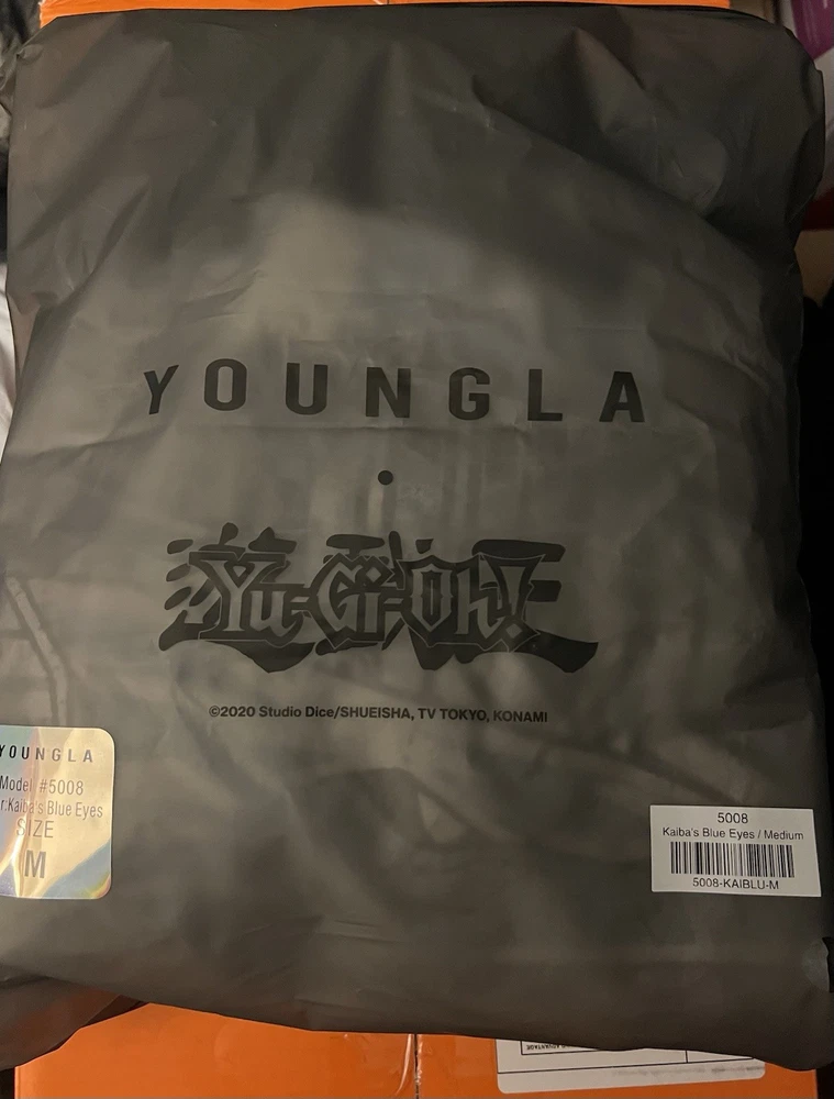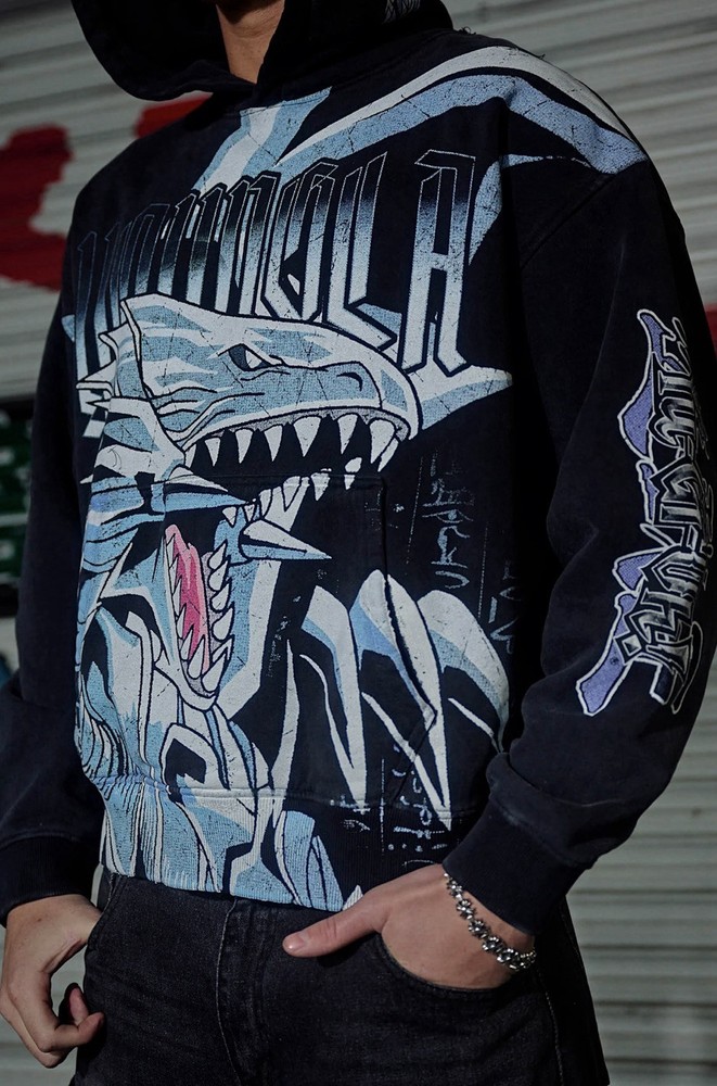YOUNG LA X YU-GI-OH “KAIBA’S WHITE BLUE EYES” HOODIE IN BLACK SOLD OUT ONLINE** SIZE - MEDIUM MATERIAL: 100% Cotton FABRIC WEIGHT: 460 GSM FIT: Oversized. DESIGN: Crafted from 100% cotton, this oversized hoodie brings anime heat with a jumbo character print on the body, plus smaller graphic details on the sleeves and hood. The black fabric wash enhances the bold artwork, making it a must-have for Yu-Gi-Oh fans and streetwear lovers alike. MODEL: The model in the second photo is wearing a size Large. Weight: 185lb Height: 5'11.
