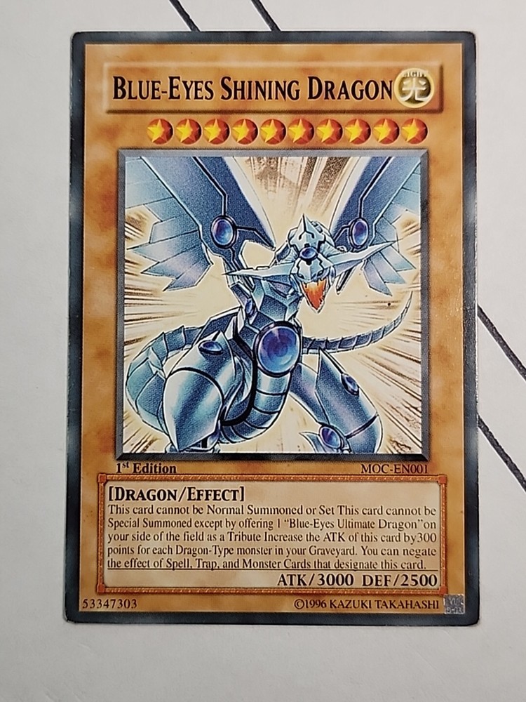 YU- GI- OH - BLUE EYES SHINING DRAGON - FIRST EDITION- MOC EN001. Condition is Ungraded. Shipped with USPS Ground Advantage....