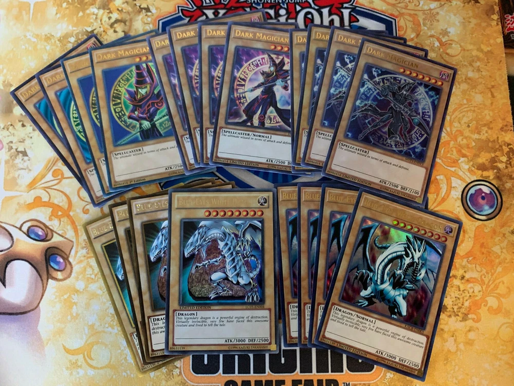 MY LOTS CONTAIN AN AVERAGE OF APPROXIMATELY 105 CARDS TO OFFSET ANY DUPLICATES! SUPER BONUS ONLY WHILE SUPPLIES LAST EVERY 100 CARD LOT WILL CONTAIN AN ULTRA RARE HOLOGRAPHIC DARK MAGICIAN ! PLEASE NOTE! ALL LOTS WILL INCLUDE AT LEAST 88+ COMMONS 4 RARES 4 SUPER RARES AND 4 ULTRA, GOLD, PLATINUM OR SECRET RARE ONE OF WHICH IS AN ULTRA RARE DARK MAGICIAN ! Order 4 Lots at the same time 3 Lots will have a ULTRA RARE Dark Magician and the other will have a ULTRA RARE Blue Eyes White Dragon ! only 99 cents shipping for each additional lot purchased! ~ Each lot is totally random taken from boxes of 13 years of collecting ~ You are buying 100 cards from any release date! Includes 4 rares and 8 holographic cards! One of the holos is an ULTRA Rare Dark Magician! Every 4th lot will have an Ultra Rare Blue Eyes White Dragon ! ~ I try not to include duplicate cards! ~ Nice mix of Monster, Spell and Trap cards! ~ Cards range from Brand New, Near Mint or Very Lightly Played condition! ~ Fast Shipping! VIEW SOME FEEDBACK ON THIS ITEM! + This lot had fantastic variety! I've gotten lots before, but this was best + Awesome set of cards! Just what I needed! +As described seller is very honest and ships fast A+++ + Good quality! Fast shipping! + awesome seller! + Will do business again! + Really great item + great cards great service + Great quality, the cards looks brand new. + Awesome!!!!!!! Just like described A++++ SUPER Fast shipping + Quick and honest + Kids loved it + Excellent + Good cards, good communication, fast shipping. Thank you! A++ + Great seller, fast shipping. + great seller will buy from again + My nephew will really like the cards. They are in great condition. ABOUT ME We are not a big, impersonal online store, I'm just a Dad whose son is a player. My son and I went to the YUGIOH Movie in 2004, got a free Gold Movie Pack and we were hooked! I just have too many cards left over from collections we purchased and am in the process of liquidating! PHOTOS Photo is an example of cards that I have collected over the past 13 years. For each lot purchased you will receive 100+ random cards including 4 Rares and 8 Holos THANK YOU!