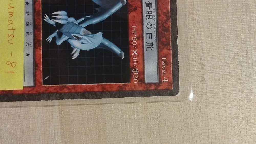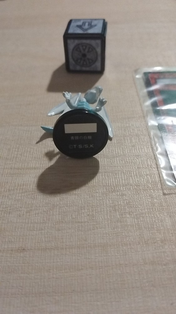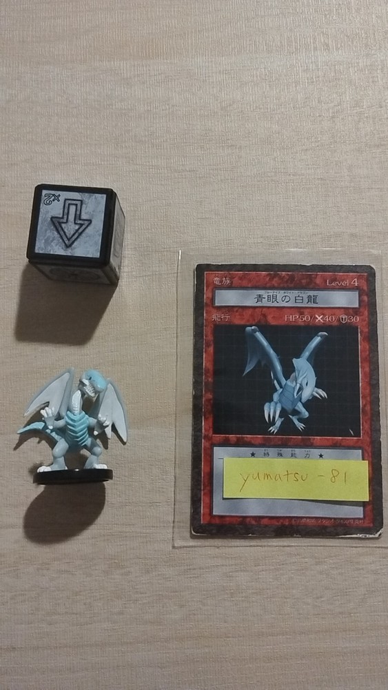 This is a Yu-Gi-Oh! TCG card and figure set featuring the iconic Blue Eyes White Dragon. The card is a normal type with a vintage finish and was manufactured by Konami in Japan. The set also includes a Dungeon Dice Monsters figure of Seto Kaiba, Yugi Muto, or the Blue Eyes White Dragon itself. The card and figure are both brand new and factory sealed, making them a great addition for collectors and fans of the Yu-Gi-Oh! franchise. This set is in Japanese language and includes one Blue Eyes White Dragon card. Don't miss out on this amazing opportunity to add this classic piece of Yu-Gi-Oh! history to your collection. I used to play with it a long time ago, so it does have some wear and tear, but I think it's in pretty good condition considering how much it was used.