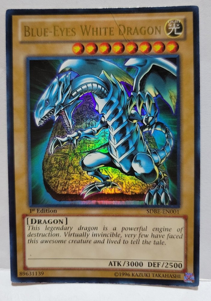THIS AUCTION IS FOR ONE BLUE EYES WHITE DRAGON ULTRA HEAVY PLAYED VISIT MY FACEBOOK PAGE YUGIOH GAMERS...
