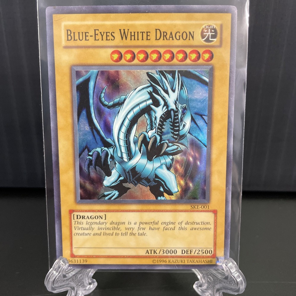 YUGIOH BLUE EYES WHITE DRAGON SUPER RARE SKE-001 1996 HOLO Condition is played - has crease on backside of card. Ships free!