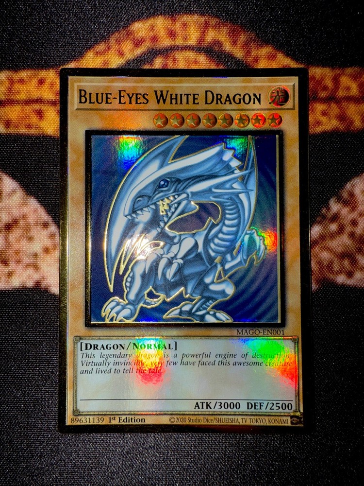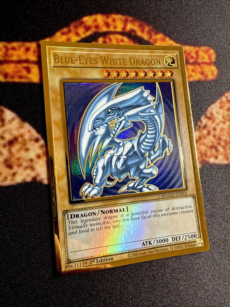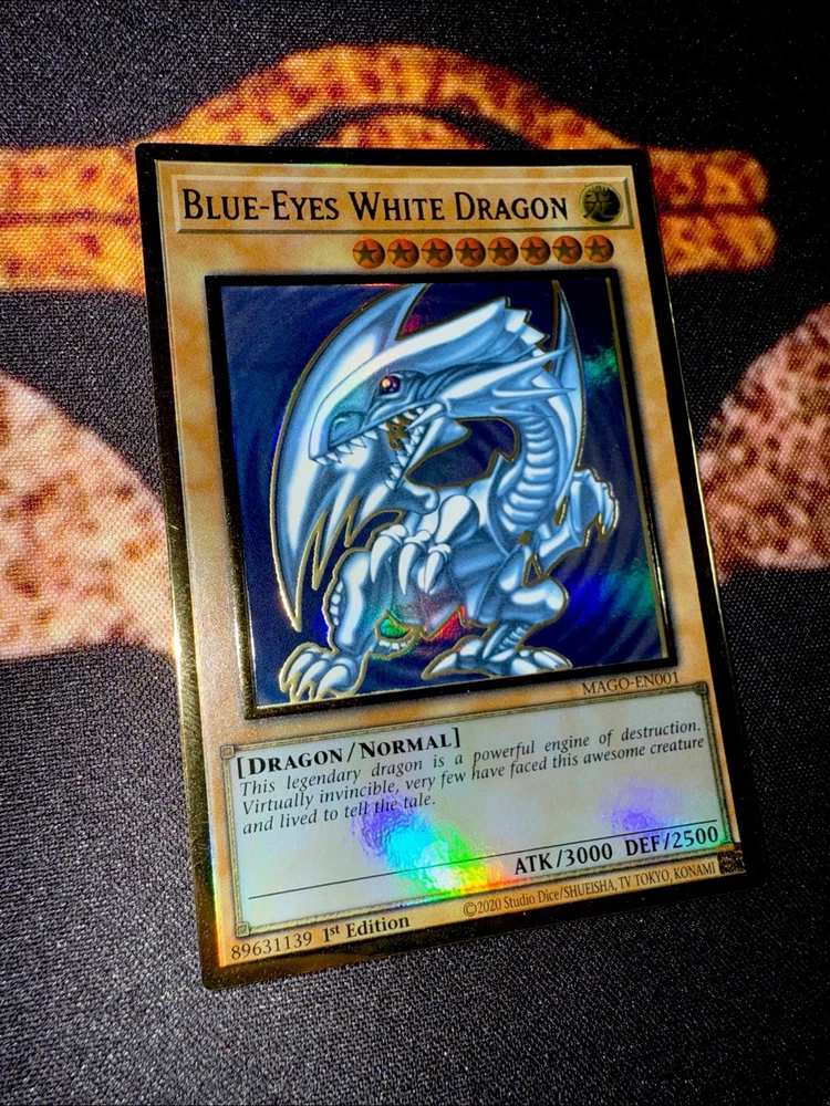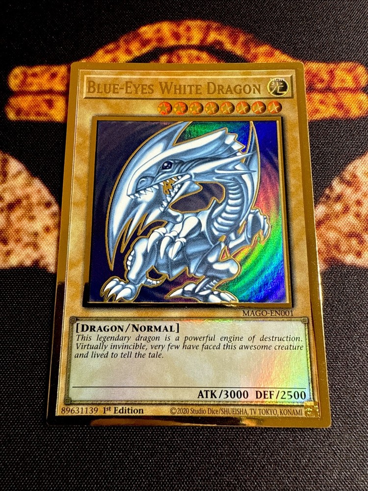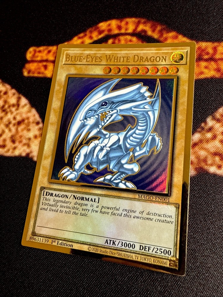 🔥YUGIOH • BLUE EYES WHITE DRAGON • ULTRA RARE • MAGO-EN001 • 1st EDITION • NM🔥 Card Sleeve Included + Top Loader • Never Play Near Mint card • Authentic Konami USA Version YOU ARE GUARANTEED TO GET THE CARD NAMED IN THE TITLE. Thank you.