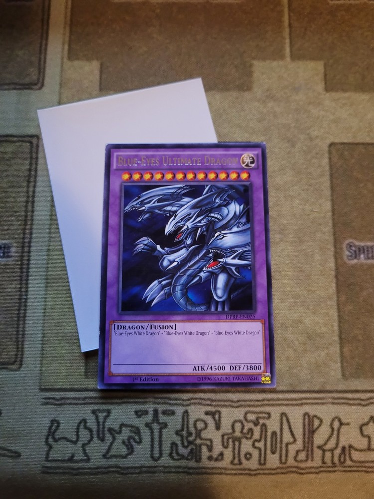 YUGIOH TCG BLUE-EYES ULTIMATE DRAGON DPRP-EN025 RARE 1ST EDITION VERY LIGHT PLAY YOU GET WHATS SHOWN IN THE PICTURE AND DESCRIPTION ALL CARDS ARE SHIP WITH PROECTIONS. ALL CARDS THAT IS BELOW 20$ WELL BE SHIP IN PWE WITH EBAY TRACKING. 24$-21$ CARDS WELL BE WITH STAMPS PWE. CARDS ABOVE 25$ WELL BE SHIP IN BUBBLE MAIL WITH USPS GROUND SHIPPING TRACKING. IF YOUR ORDERS ADDS UP TO 25$ OR ABOVE IT WOULD BE ALSO IN A BUBBLE MAILER. IF YOU ARE FROM PUERTO RICO AND ARE BUYING MAKE SURE YOU HAVE "COUNTRY LIST AS UNITED STATES NOT PRI" OR ELSE I CAN'T PRINT EBAYSHIPPING LABEL WITH TRACKING AND WELL SENT ITEM BY STAMPS TO YOU. THANKS. To international buyers since I have been having many buyers that are using Fright Forward Services. YOU ARE BUYING AT YOUR OWN RISK. As I list in my description, I ship using PWE (Plain White Envelope) for cards that does not reach $25 and above. I do not know how the Fright Services pack it after mailing it to them. All I know is that many of the PWE does not make it to its original destination (your real home address) either it's the Fright Services fault for not packing it in bubble mailer or Usps for losing it in transit. If it is being send by PWE by the Fright Services, it made take months before getting there. Also, in case if its lost or does not make it to its destination you must direct your attention to the Fright Services before contacting me. It is not my responsibly for lost mail(item) due to 3rd party delivery. To make sure you get your cards to you faster and more accuracy you must order cards combining to $25 or above that way I can use Ground Advantage and send it in bubble mailer most of the bubble mailer I use will make it to its destination. Thank you. IF YOU CAN LEAVE FEEDBACKS THAT WOULD BE MUCH APPRECIATE THANK YOU FOR BUYING.