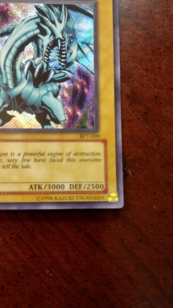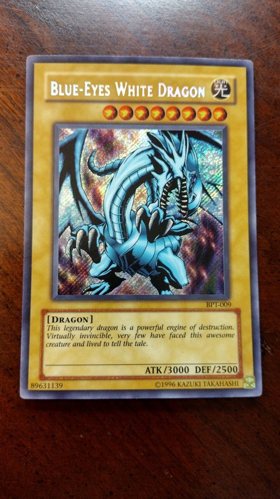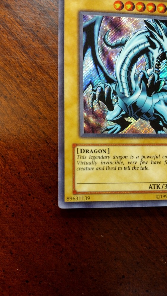 Front of card is Near Mint back of card shows small scuffing. Edges are very sharp and clean. See in pictures. This rare and highly sought-after Blue-Eyes White Dragon card from the Yu-Gi-Oh! TCG is a must-have for any serious collector. With a vintage secret rare finish and a holographic design, this card is sure to impress. Featuring the iconic character Seto Kaiba and a powerful 3000 attack, this Energy dragon card is a valuable addition to any deck. The card is in excellent shape, with no signs of wear or damage, and is perfect for display or use in gameplay. Manufactured by Konami in the United States, this card is an Unlimited edition and is available in English language. Don't miss out on the chance to own a piece of Yu-Gi-Oh! history with this Blue-Eyes White Dragon card.