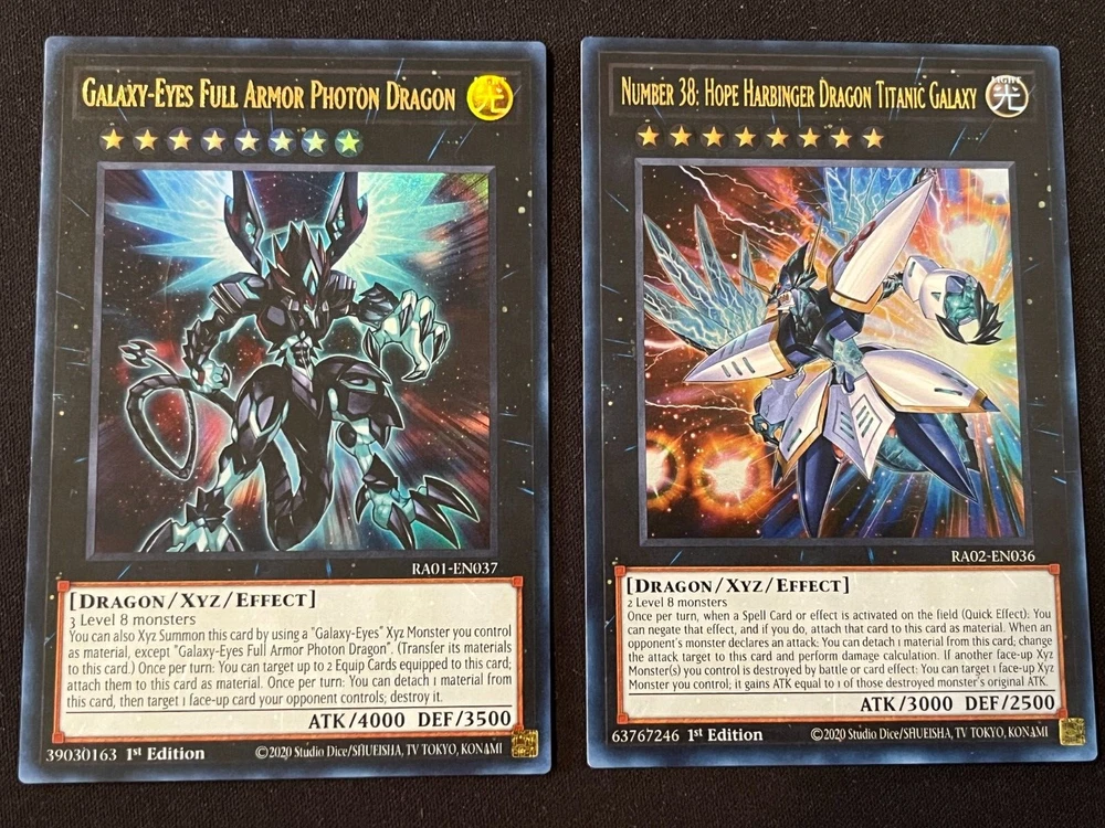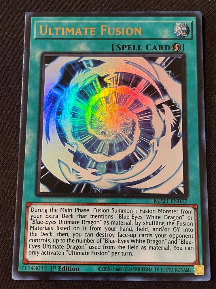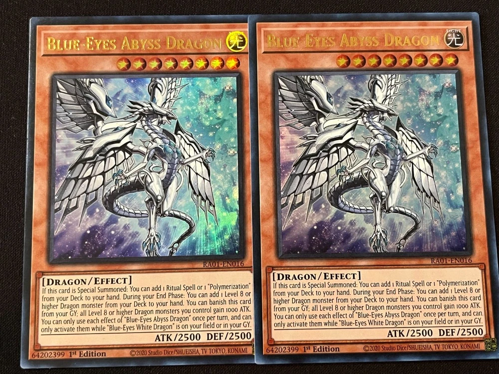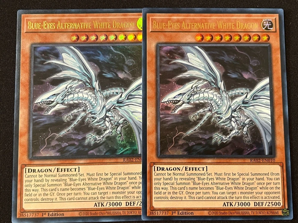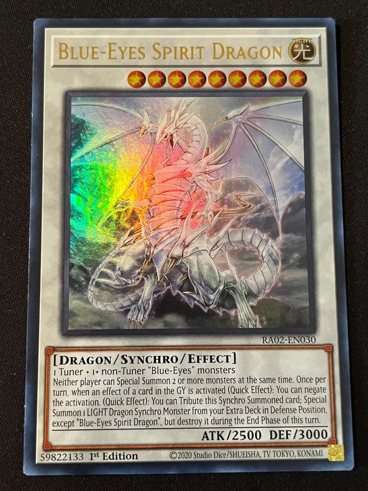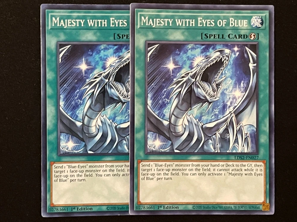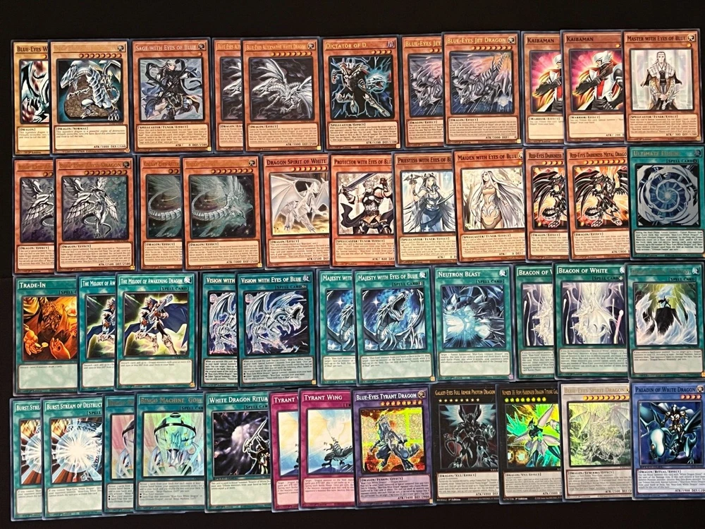 MONSTERS: 1X PALADIN OF WHITE DRAGON (COMMON) 1X SAGE WITH EYES OF BLUE (SILVER) 2X BLUE-EYES ALTERNATIVE WHITE DRAGON (ULTRA RARE) 2X BLUE-EYES JET DRAGON (ULTRA RARE) 2X BLUE EYES WHITE DRAGON (COMMON) 1X DRAGON SPIRIT OF WHITE (COMMON) 2X GALAXY-EYES AFTERGLOW DRAGON (ULTRA RARE) 2X BLUE-EYES ABYSS DRAGON (ULTRA RARE) 1X DICTATOR OF D. (ULTRA RARE) 2X KAIBAMAN (COMMON) 2X RED-EYES DARKNESS METAL DRAGON (COMMON) 1X MASTER WITH EYES OF BLUE (COMMON) 1X MAIDEN WITH EYES OF BLUE (COMMON) 1X PRIESTESS WITH EYES OF BLUE (COMMON) 1X PROTECTOR WITH EYES OF BLUE (COMMON) SPELLS: 1X NEUTRON BLAST (COMMON) 2X MAJESTY WITH EYES OF BLUE (COMMON) 2X VISION WITH EYES OF BLUE (PRISMATIC SECRET RARE) 2X THE MELODY OF AWAKENING DRAGON (COMMON) 1X ULTIMATE FUSION (ULTRA RARE) 1X DRAGON REVIVAL RHAPSODY (ULTRA RARE) 1X WHITE DREAGON RITUAL (COMMON) 2X BEACON OF WHITE (COMMON) 2X BURST STREAM OF DESTRUCTION (COMMON) 2X BINGO MACHINE, GO!!! (ULTRA RARE) TRAPS: 2X TYRANT WING (COMMON) EXTRA DECK: 1X BLUE-EYES TYRANT DRAGON (PRISMATIC SECRET RARE) 1X GALAXY-EYES FULL ARMOR PHOTON DRAGON (ULTRA RARE) 1X NUMBER 38: HOPE HARBINGER DRAGON TITANIC GALAXY (ULTRA RARE) 1X BLUE-EYES SPIRIT DRAGON (ULTRA RARE)