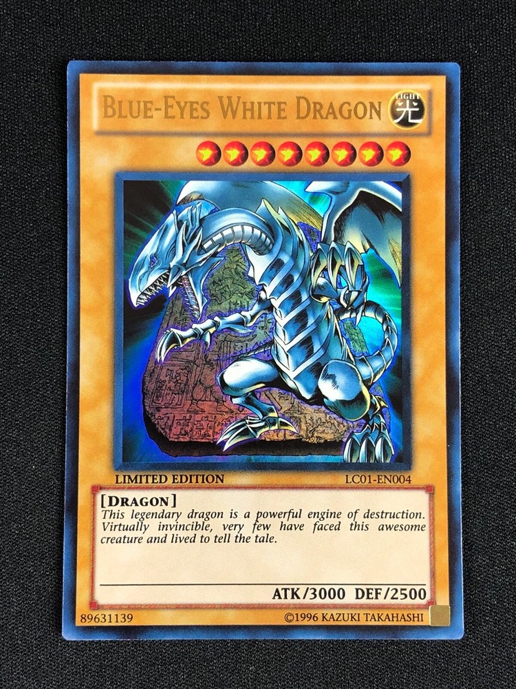 YUGIOH BLUE-EYES WHITE DRAGON LC01-EN004 ORIGINAL PRINT! ULTRA RARE! ALL CARDS IN THIS AUCTION ARE IN NEAR MINT TO MINT CONDITION UNLESS STATED OTHERWISE IN THE TITLE. AND, YOU ARE GUARANTEED TO RECEIVE THE CARD NAMED IN THE TITLE. PLEASE NOTE, IF THERE'S MORE THAN 1 COPY AVAILABLE, YOU MAY NOT RECIEVE THE SAME EXACT CARD IN THE PHOTO. HOWEVER, IT WILL BE THE SAME EXACT CARD IN THE TITLE, AND DESCRIPTION! PLEASE CONTACT ME IF THERE IS ANYTHING WRONG WITH YOUR ORDER OR SHIPPING BEFORE LEAVING FEEDBACK. PLEASE GIVE ME A CHANCE TO FIX ANY PROBLEM YOU MAY HAVE. THANK YOU! Shipping Information: Shipping and Handling for this auction will be Free inside the United States - With Tracking! International Shipping Available Through Ebay’s Global Shipping Program. (BUYER IS RESPONSIBLE FOR ANY TAX) **Read the TITLE to see the condition of the cards Before you place a bid. Any damaged cards will be listed as such In The Title (FOR EXAMPLE: Blue Eyes White Dragon LOB-001 - Play/Edgewear). If it doesn't say anything about damage, it is in near-mint to mint condition. If you have any questions, message me Before you place your bid.** RETURN POLICY: RETURNS ARE ACCEPTED IF THE ITEM ARRIVES DAMAGED, OR NOT AS DESCRIBED. RETURNS ARE NOT ACCEPTED FOR BUYERS REMORSE. CHECK OUT MY OTHER AUCTIONS! _gsrx_vers_1516 (GS 9.3 (1516))