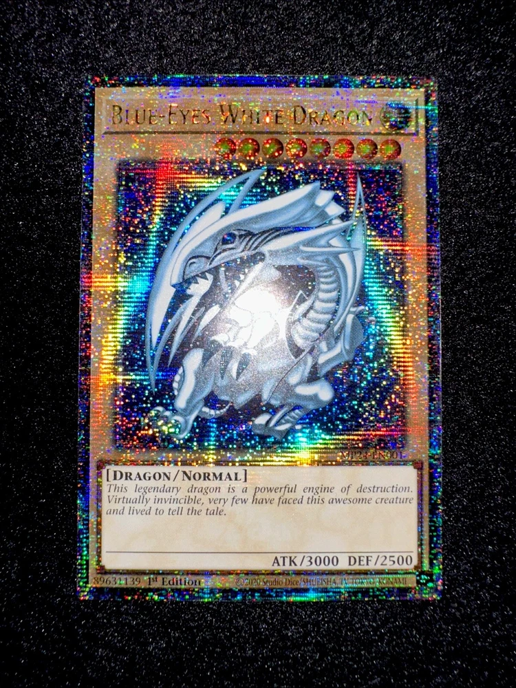 🔥YUGIOH • BLUE-EYES WHITE DRAGON • MP24-EN001 • 1st EDITION • QCR • NEAR MINT🔥 Card Sleeve Included + Top Loader • Never Play Near Mint card • Authentic Konami USA Version YOU ARE GUARANTEED TO GET THE CARD NAMED IN THE TITLE. Thank you.