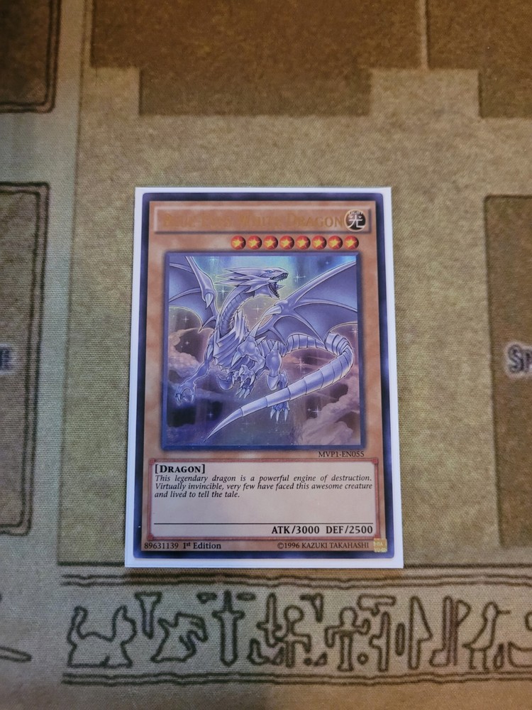 YUGIOH TCG BLUE-EYES WHITE DRAGON MVP1-EN055 ULTRA 1ST EDITION NEAR MINT YOU GET WHATS SHOWN IN THE PICTURE AND DESCRIPTION ALL CARDS ARE SHIP WITH PROECTIONS. ALL CARDS THAT IS BELOW 20$ WELL BE SHIP IN PWE WITH EBAY TRACKING. 24$-21$ CARDS WELL BE WITH STAMPS PWE. CARDS ABOVE 25$ WELL BE SHIP IN BUBBLE MAIL WITH USPS GROUND SHIPPING TRACKING. IF YOUR ORDERS ADDS UP TO 25$ OR ABOVE IT WOULD BE ALSO IN A BUBBLE MAILER. IF YOU ARE FROM PUERTO RICO AND ARE BUYING MAKE SURE YOU HAVE "COUNTRY LIST AS UNITED STATES NOT PRI" OR ELSE I CAN'T PRINT EBAYSHIPPING LABEL WITH TRACKING AND WELL SENT ITEM BY STAMPS TO YOU. THANKS. To international buyers since I have been having many buyers that are using Fright Forward Services. YOU ARE BUYING AT YOUR OWN RISK. As I list in my description, I ship using PWE (Plain White Envelope) for cards that does not reach $25 and above. I do not know how the Fright Services pack it after mailing it to them. All I know is that many of the PWE does not make it to its original destination (your real home address) either it's the Fright Services fault for not packing it in bubble mailer or Usps for losing it in transit. If it is being send by PWE by the Fright Services, it made take months before getting there. Also, in case if its lost or does not make it to its destination you must direct your attention to the Fright Services before contacting me. It is not my responsibly for lost mail(item) due to 3rd party delivery. To make sure you get your cards to you faster and more accuracy you must order cards combining to $25 or above that way I can use Ground Advantage and send it in bubble mailer most of the bubble mailer I use will make it to its destination. Thank you. IF YOU CAN LEAVE FEEDBACKS THAT WOULD BE MUCH APPRECIATE THANK YOU FOR BUYING.