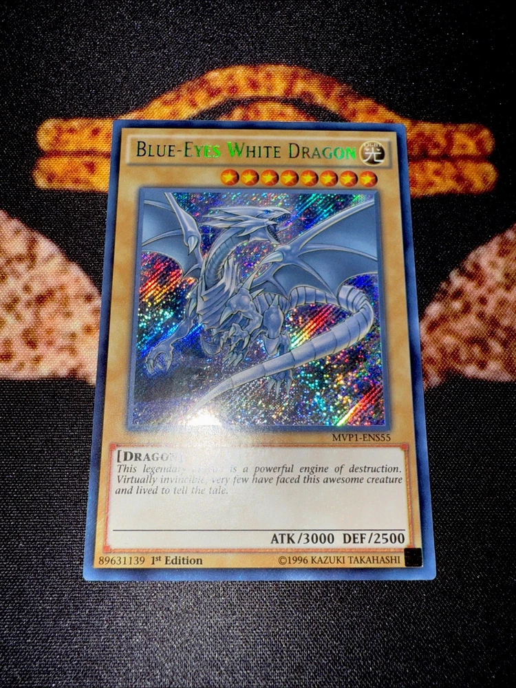 π₯ YUGIOH β’ BLUE-EYES WHITE DRAGON β’ MVP1-ENS55 β’ SECRET RARE β’ 1st EDITION β’ MINT π₯ Card Sleeve Included + Top Loader β’ MINT CARD β’ Authentic Konami USA Version YOU ARE GUARANTEED TO GET THE CARD NAMED IN THE TITLE. Thank you.