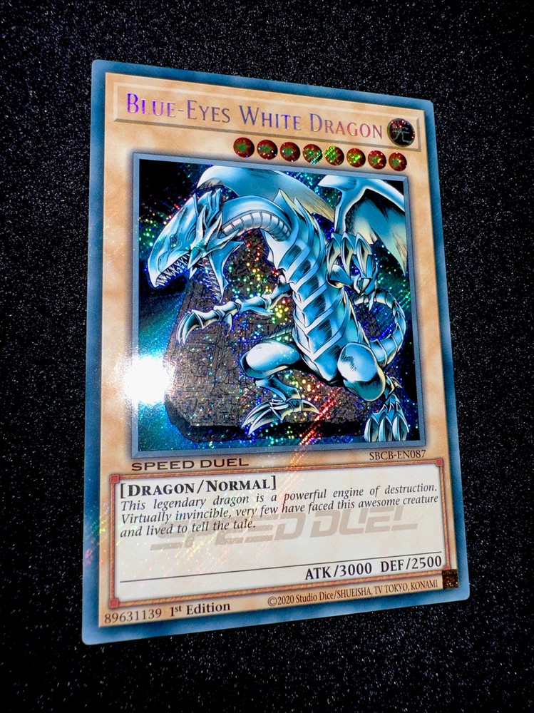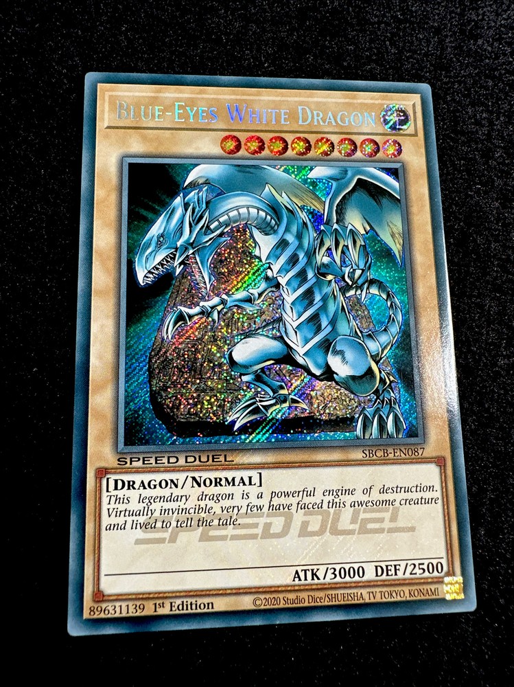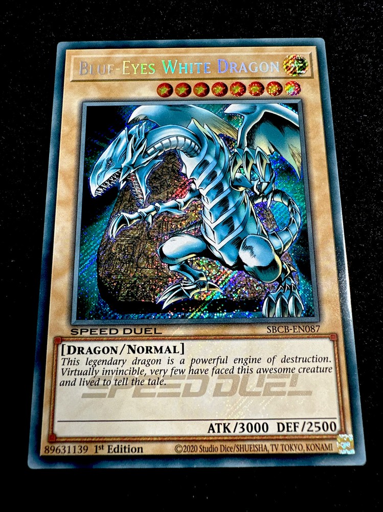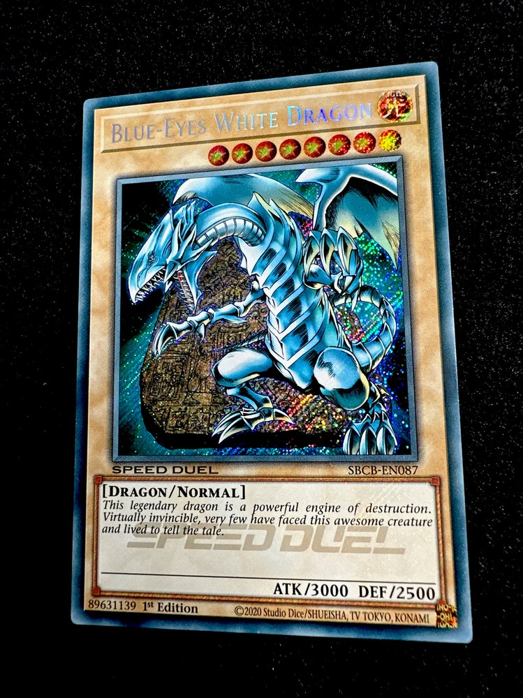 🔥 YUGIOH • BLUE-EYES WHITE DRAGON • SBCB-EN087 • 1st • SECRET RARE • NM/M🔥 Card Sleeve Included + Top Loader •Never Play Near Mint or Mint card • Authentic Konami USA Version YOU ARE GUARANTEED TO GET THE CARD NAMED IN THE TITLE. Thank you.