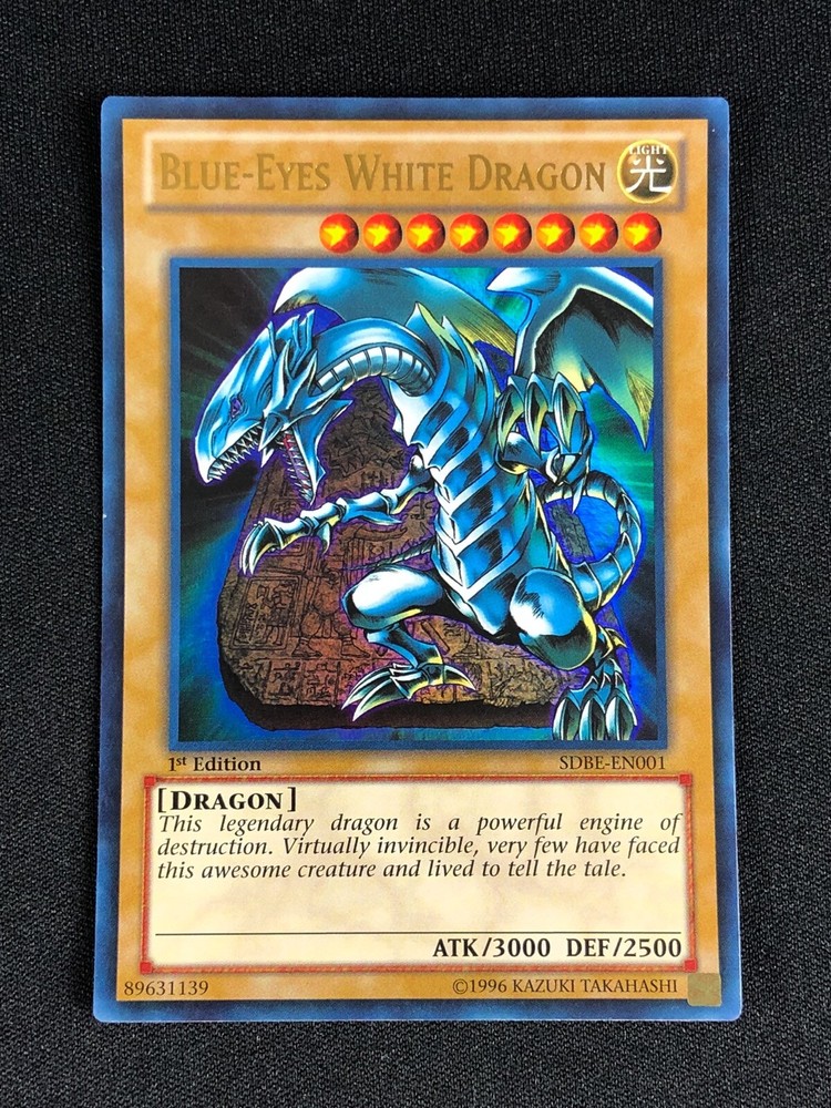 YUGIOH BLUE-EYES WHITE DRAGON SDBE-EN001 1ST ULTRA ALL CARDS IN THIS AUCTION ARE IN NEAR MINT TO MINT CONDITION UNLESS STATED OTHERWISE IN THE TITLE. AND, YOU ARE GUARANTEED TO RECEIVE THE CARD NAMED IN THE TITLE. PLEASE NOTE, IF THERE'S MORE THAN 1 COPY AVAILABLE, YOU MAY NOT RECIEVE THE SAME EXACT CARD IN THE PHOTO. HOWEVER, IT WILL BE THE SAME EXACT CARD IN THE TITLE, AND DESCRIPTION! PLEASE CONTACT ME IF THERE IS ANYTHING WRONG WITH YOUR ORDER OR SHIPPING BEFORE LEAVING FEEDBACK. PLEASE GIVE ME A CHANCE TO FIX ANY PROBLEM YOU MAY HAVE. THANK YOU! Shipping Information: Shipping and Handling for this auction will be Free inside the United States - With Tracking! International Shipping Available Through Ebay’s Global Shipping Program. (BUYER IS RESPONSIBLE FOR ANY TAX) **Read the TITLE to see the condition of the cards Before you place a bid. Any damaged cards will be listed as such In The Title (FOR EXAMPLE: Blue Eyes White Dragon LOB-001 - Play/Edgewear). If it doesn't say anything about damage, it is in near-mint to mint condition. If you have any questions, message me Before you place your bid.** RETURN POLICY: RETURNS ARE ACCEPTED IF THE ITEM ARRIVES DAMAGED, OR NOT AS DESCRIBED. RETURNS ARE NOT ACCEPTED FOR BUYERS REMORSE. CHECK OUT MY OTHER AUCTIONS! _gsrx_vers_1516 (GS 9.3 (1516))