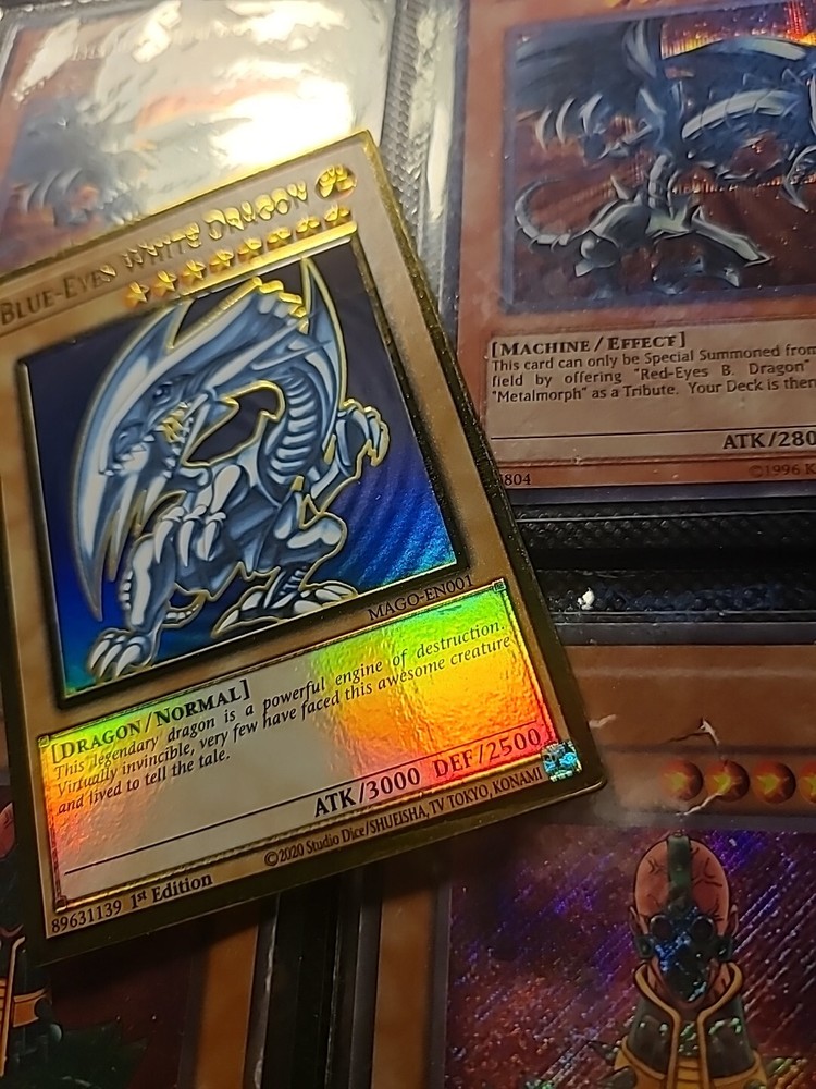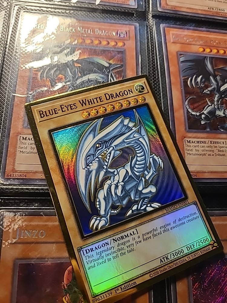 This rare Yu-Gi-Oh! card features the iconic Blue-Eyes White Dragon, known for its powerful attacks and stunning holographic finish. Fans of the game will recognize the character Seto Kaiba as the original owner and master of this card, which comes from the Maximum Gold set and is designated as Ultra Rare. The card is in excellent condition, with only slight signs of use, and is sold ungraded. Its English language text and 1st Edition features make it a valuable addition to any collection of collectible card games. Don't miss your chance to add this iconic monster card to your Yu-Gi-Oh! TCG deck.