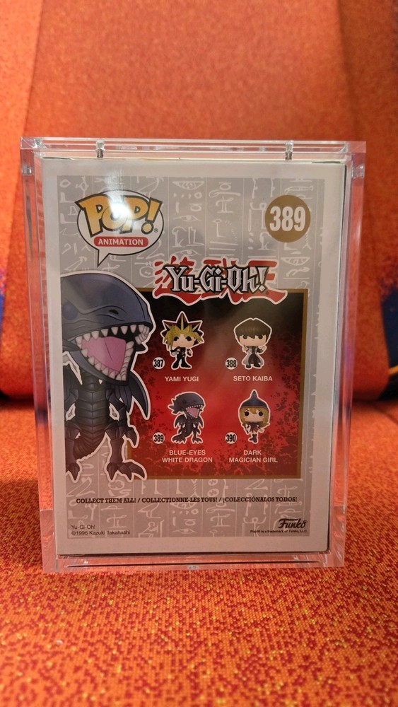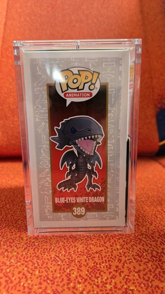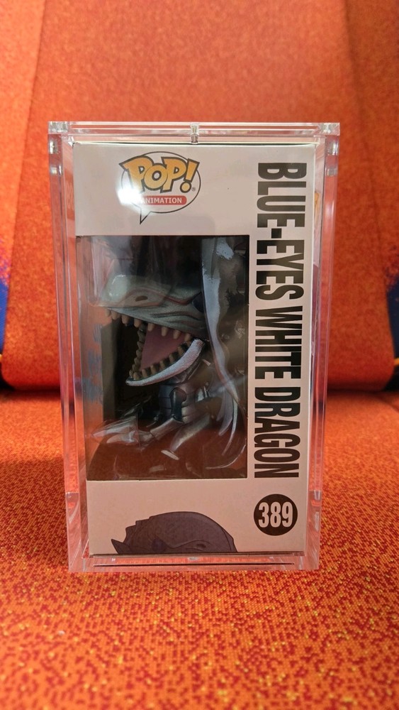 This product is a Funko Pop/Card featuring Blue Eyes White Dragon from the Yu-Gi-Oh! Series 1, signed by the Kaiba voice actor. The vinyl figure is a part of the Yu-Gi-Oh! franchise and is exclusive to Funko. The autograph is hard signed, making it a valuable addition to any collector's display.