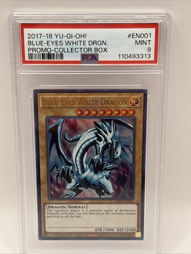 The YU-GI-OH! Blue-Eyes White Dragon KACB-EN001 Limited Edition PSA 9 card is a highly sought-after collectible card in the Yu-Gi-Oh! TCG. This card features the iconic Blue-Eyes White Dragon character from the Yugi set and is a Normal type with a Light attribute. As a limited edition card, it holds special significance for collectors and players alike. With a PSA 9 grading, this card is sure to be a valuable addition to any collection.