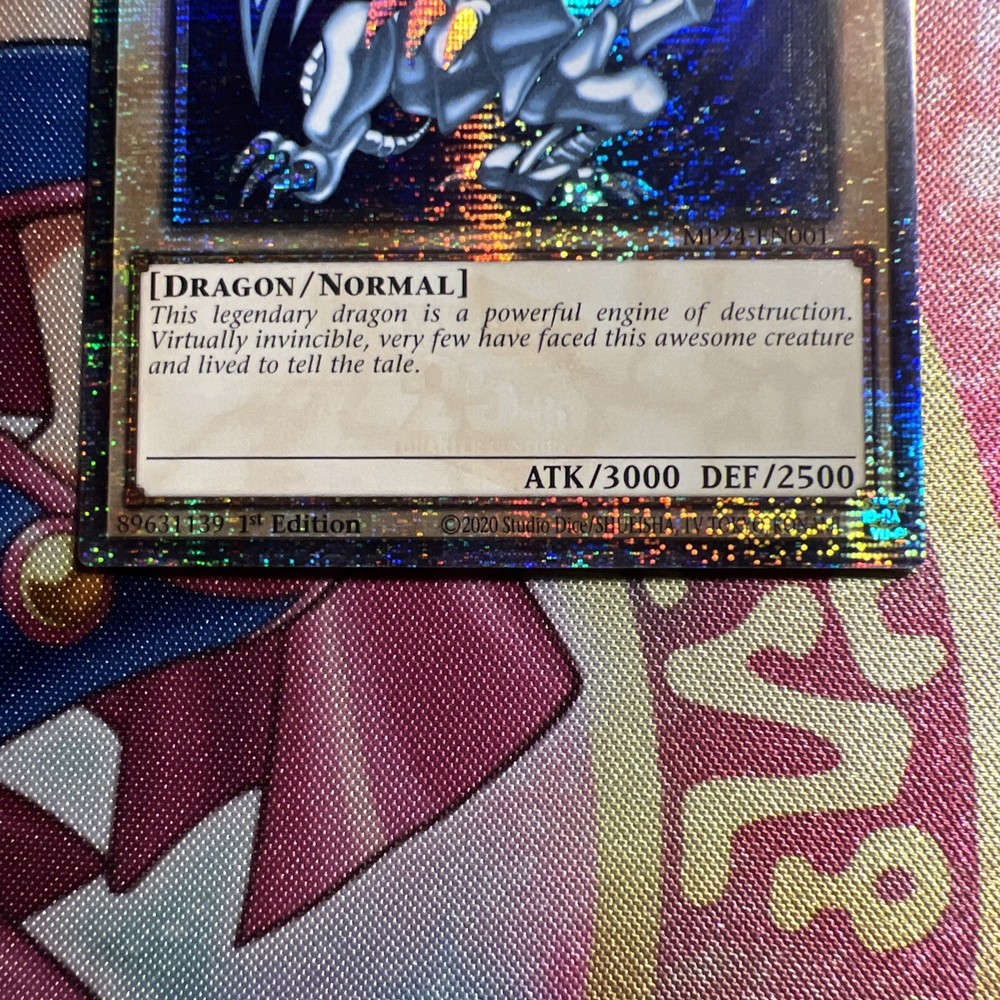 The YUGIOH Blue-Eyes White Dragon MP24-EN001 Quarter Century Rare 1st Edition card is a highly sought-after collectible in the Yu-Gi-Oh! TCG. This Secret Rare card features the character Seto Kaiba and depicts a Dragon as its creature type. Being a Normal card with the Light attribute, it holds value for collectors and players alike. With its rarity and special edition status, this card remains a prized possession for fans of the game.