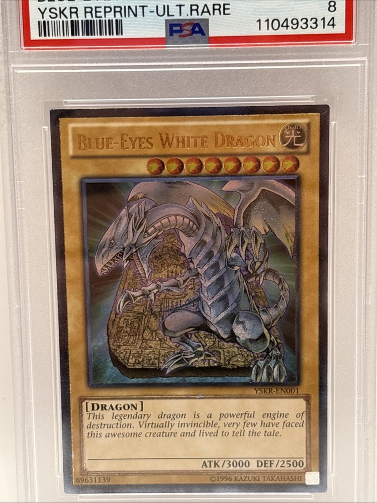The YU-GI-OH! Blue-Eyes White Dragon card is a highly sought-after collectible in the Yu-Gi-Oh! TCG. This ultimate rare card features a stunning foil finish and showcases the iconic dragon character. Manufactured by Konami in the United States, this English-language card is from the - Yugi - set and has a standard size for easy gameplay. With its white attribute, this card is perfect for players aged 4 and up who appreciate adding a powerful monster to their deck.