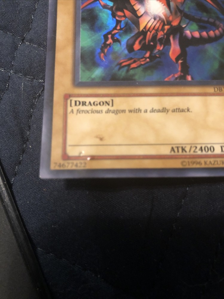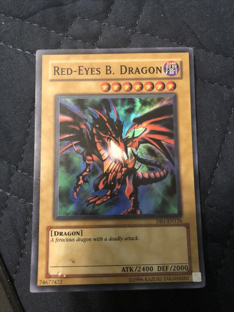 YU-GI-OH! DB1 EN126 RED-EYES B. DRAGON. See pics closely. Refunds or exchanges would be on a case by case basis, depending on reason, but mostly there are no refunds. So please look thoroughly at pictures before bidding/buying. Please ask any questions beforehand. Thanks so much for checking out our items. See the rest in our eBay store AKZ Vintage.