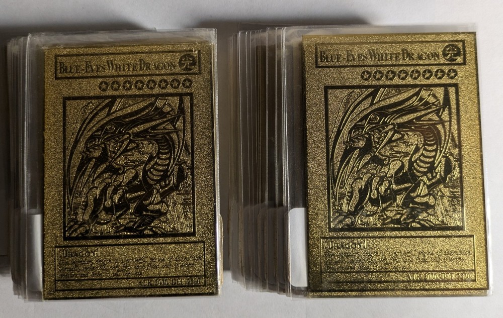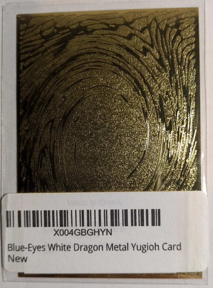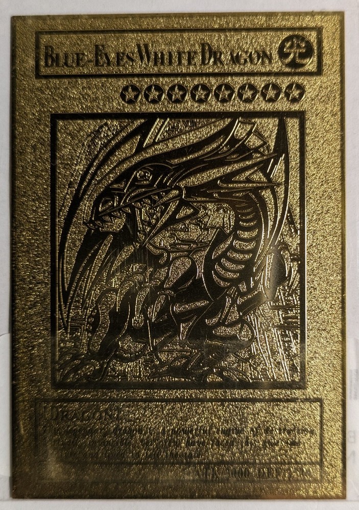This custom Golden Metal Card of the Blue-Eyes White Dragon from the popular game Yu-Gi-Oh! is a must-have for any collector or player. The card is made of high-quality materials and features intricate details that make it stand out from the rest. With its English language and age level of 4 and up, this card is perfect for players of all ages. Its unique features include its gold color and metal material, making it a valuable addition to any collection. Whether you're a fan of the game or a collector, this Blue-Eyes White Dragon custom card is sure to impress. Thiese are custom cards. They are not for official tournament play. These are in new condition, but some might have very minor dings from handling. I have many of these & most, if not all are in clear plastic sleves. If you have any questions please ask before bidding. I do combine shipping for all auctions won every week. Just send me a message & I'll send you an invoice with the combined shipping cost. Thanks for looking and happy bidding. =)