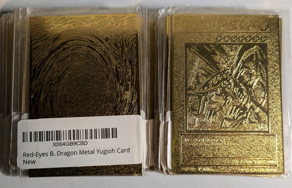 Elevate your Yu-Gi-Oh! collection with the exclusive Red-Eyes B Dragon metal card, a treasure for both players and collectors alike. This custom card, crafted with meticulous attention to detail, features the iconic Red-Eyes B Dragon in a stunning gold color, ensuring it stands out in any deck or display. As a limited edition piece, this card is a must-have for those who value rarity and quality. Its durable metal construction is designed to endure the rigors of play, while the English language card is perfect for players and collectors over the age of 4. Add this unique card to your arsenal and make a statement in the Yu-Gi-Oh! community. These are custom cards, not for tournament play. These are in new condition, but may have very minor dings from handling. I have many of these & most come in clear plastic sleeves. If you have any questions please ask before bidding. I do combine shipping for all auctions won every week. Just send me a message & I'll send you an invoice with the combined shipping cost. Thanks for looking and happy bidding. =)