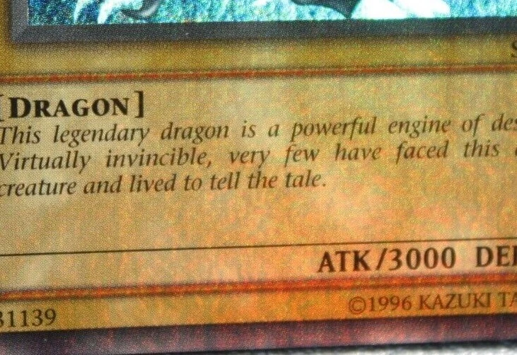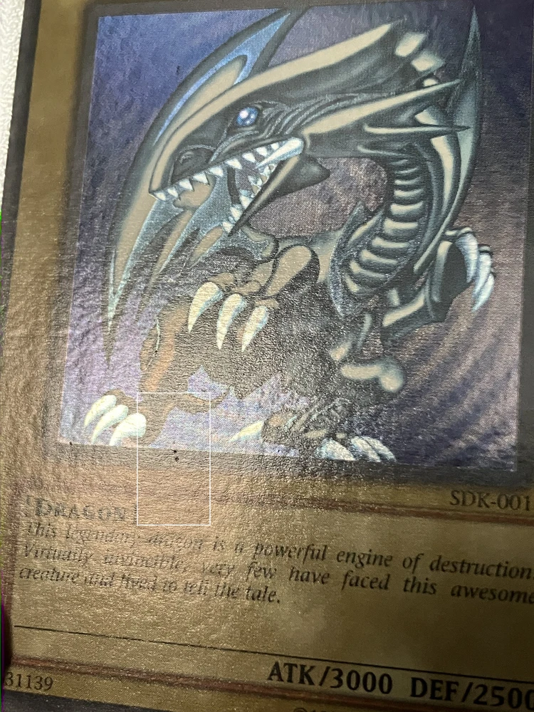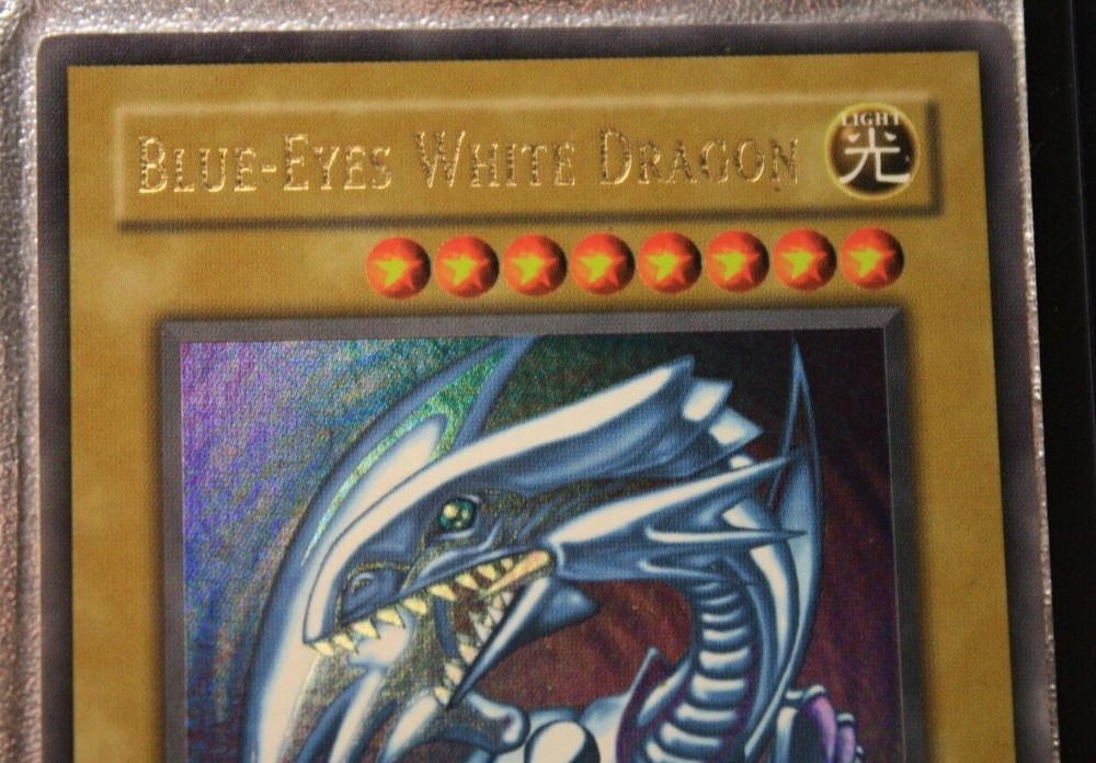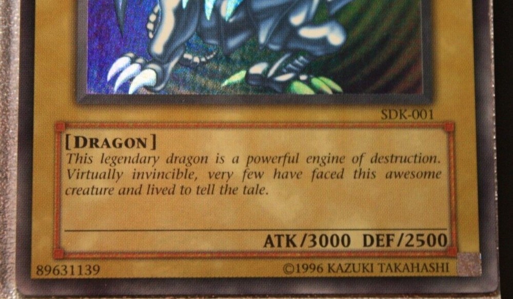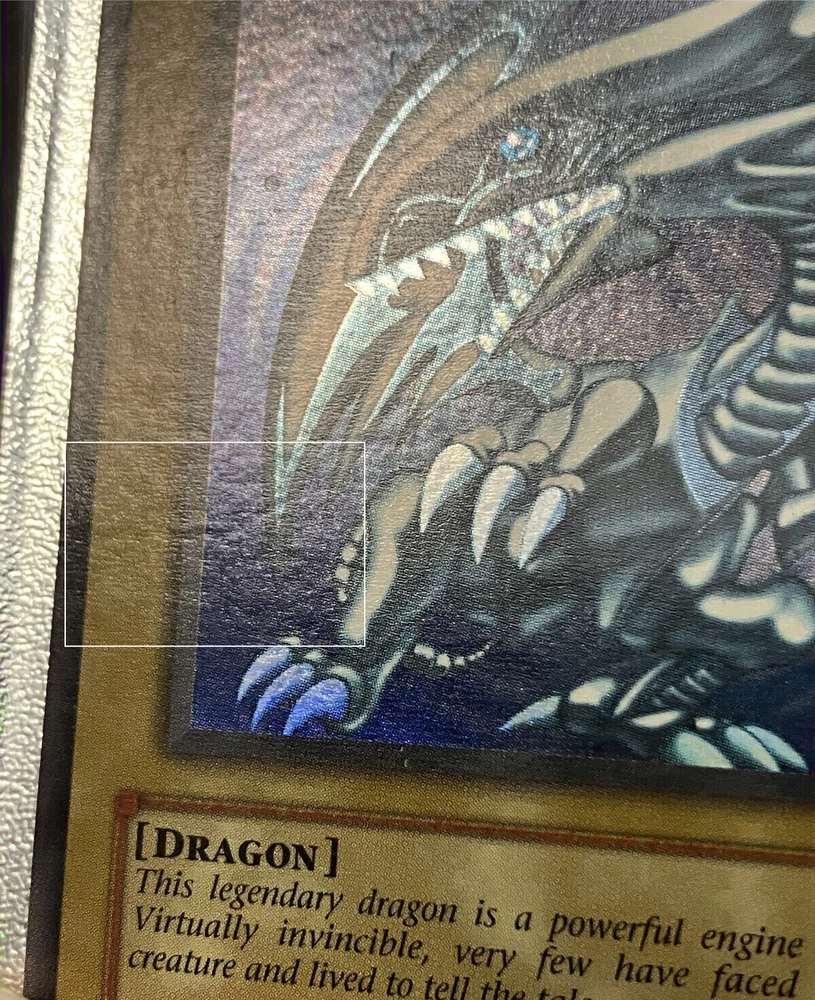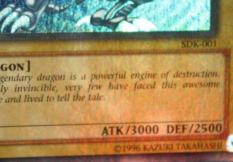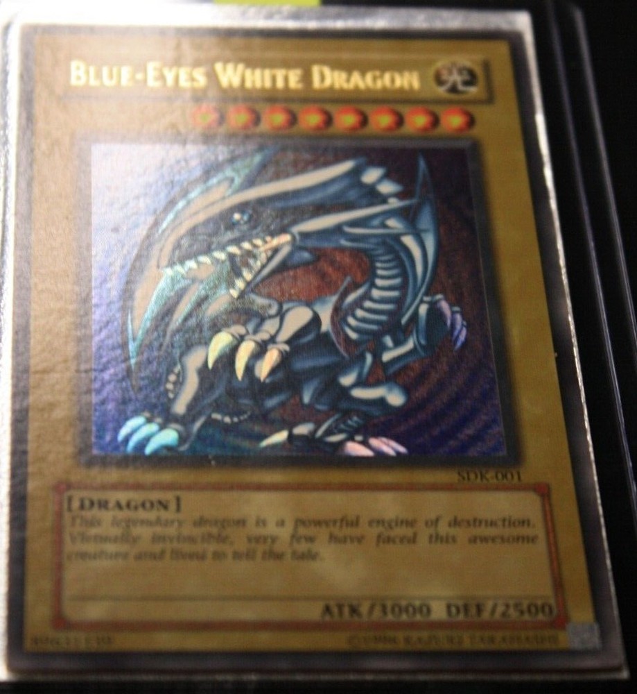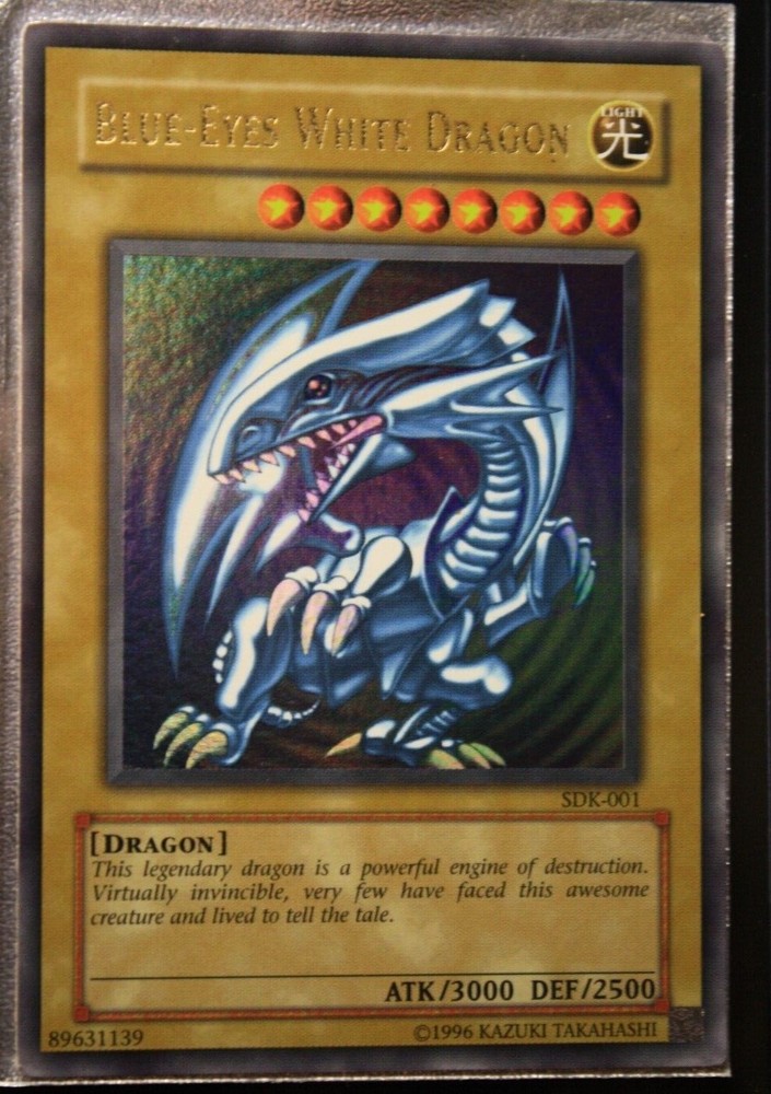You are bidding on a Vintage, English, Ultra Rare, Blue-Eyes White Dragon. Holographic Bleed Error card/misprint No. SDK-001 from the Konami, Kaiba Starter Deck set in LIGHTLY PLAYED condition. Please look at pictures for quality. Great centering, clean art, the top right corner does have a slight play mark, with little to no whitening around the edges of card, or corners. The back may have some minor wear due to age, there is a small "indent" on the left side of the card and 2 small indents on the front center of the card art as well. Pictures 5-8 were highlighted to show these imperfections fully due to how the starter deck was stored so many decades ago. Please look carefully before purchasing. All cards may have minor flaws. The error is the Super Rare holo effect is printed on the entire front of the card, instead of just the background of the card art, the last 4 pictures were taken in direct sunlight to show the error fully. I do accept offers even if Buy It Now is active! So you're free to message if you want to negotiate. Condition is Lightly Played. Payment must be within 3 days of auction ending, no returns and no partial refunds on Lightly Played cards.Shipped with USPS Ground Advantage (Formally USPS First Class), put between two piece of cardboard, and placed in a bubble mailer If you have any questions feel free to message me. Thank you and good luck! If you need to see more photos, or have any questions feel free to message me, all Vintage Never Played cards have been handled less than 5 times in their cycle. It went from pack, to sleeve/toploader, and into a safe for 20+ years, only to be brought back out and put into a new sleeve/toploader, which is what the first two pictures are. Any newer Never Played cards were handled less than 5 times, and simply went from pack to sleeve/toploader and stored in a safe until ready to be sold. Feedback is important, if you can take a moment to leave one it'd be much appreciated.