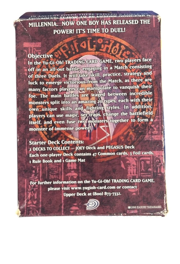 This 1st Edition Joey & Pegasus Starter Deck is a must-have for Yu-Gi-Oh! fans! The 2002 Konami release brings back nostalgia with classic cards like Red-Eyes Black Dragon. Perfect for collectors or players who love vintage decks—great condition, authentic, and a true piece of duel history. Highly recommended!