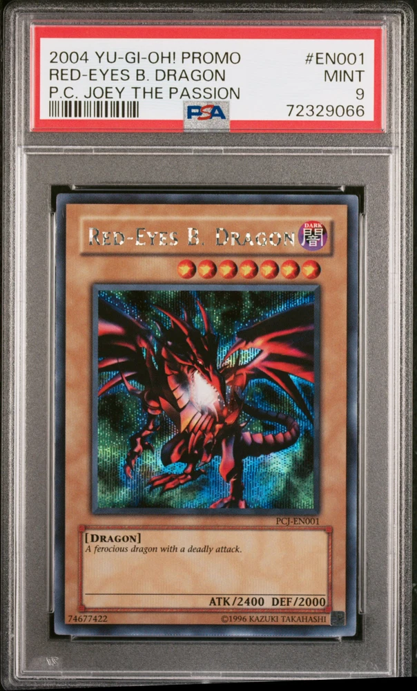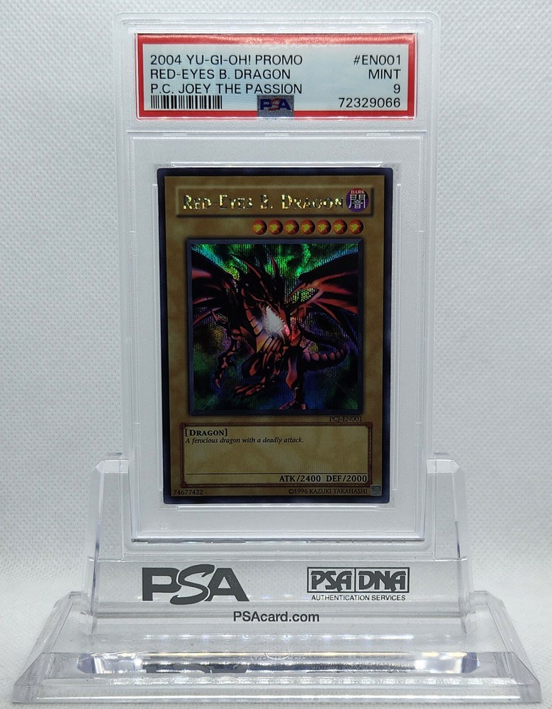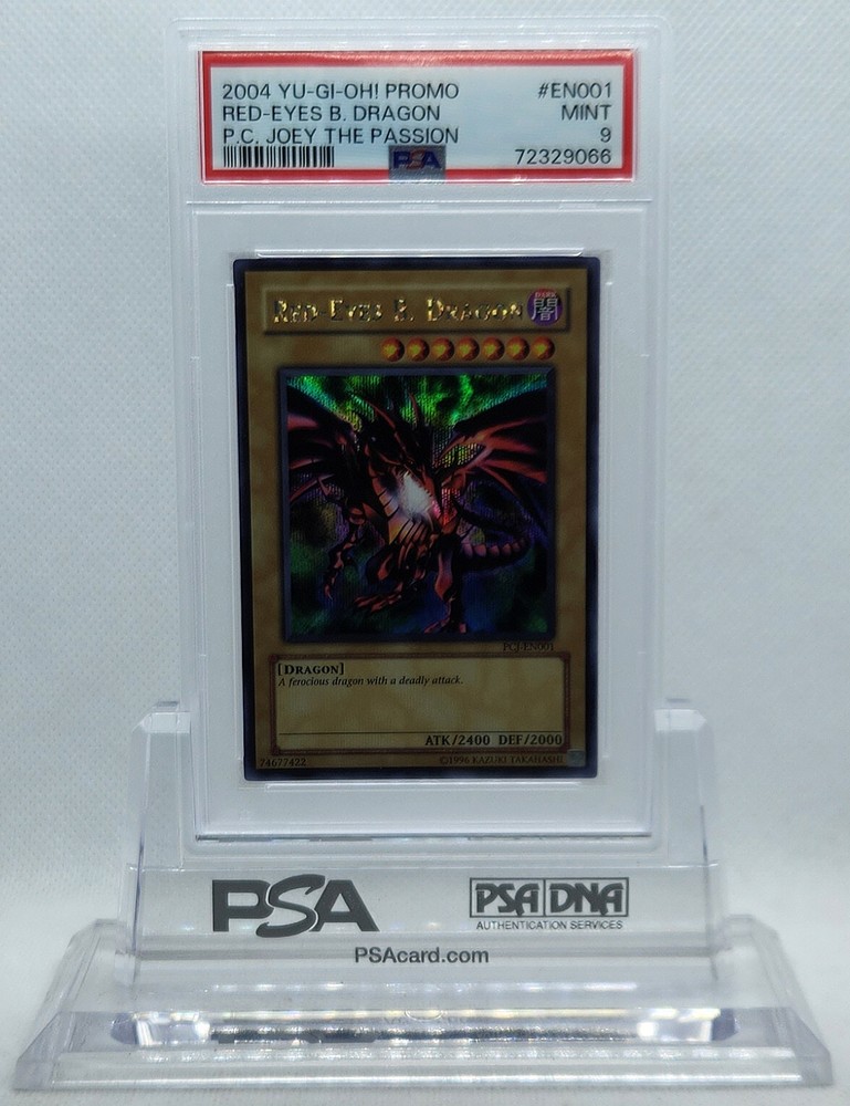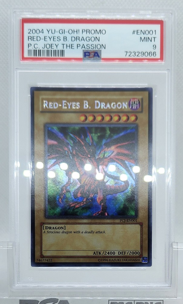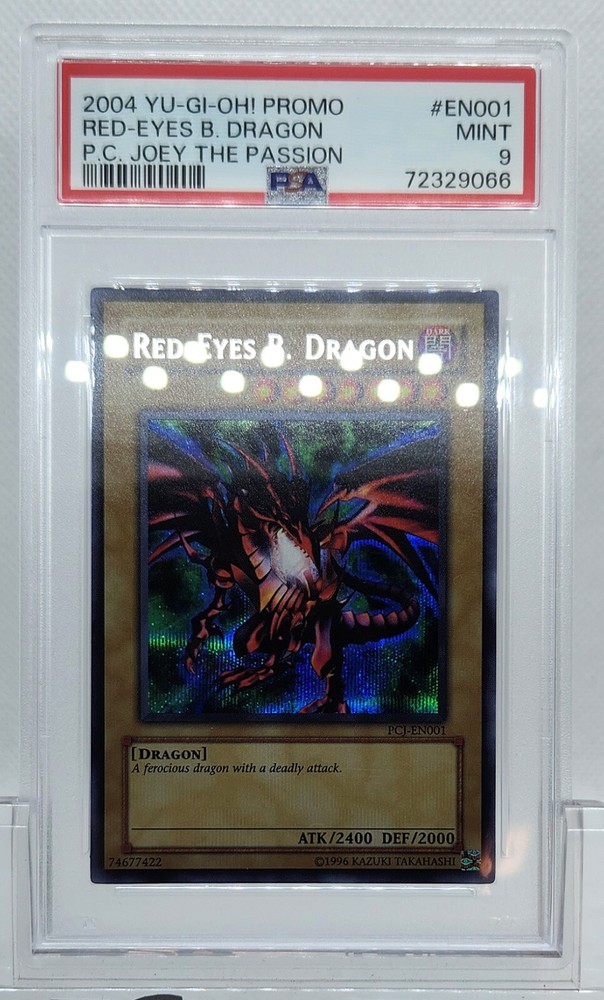 Description Condition: PSA 9 MINT Availability: In Stock You are Purchasing YUGIOH PCJ-EN001 RED-EYES B. DRAGON PRISMATIC SECRET RARE PSA 9 MINT #72329066 Professionally graded by Professional Sports Authenticator (PSA) *PLEASE REVIEW PHOTOS BEFORE BIDDING/BUYING >>MORE GRADED YUGIOH CARDS<< IG: CARD_RUSH_INC Payment Options Payment is expected within 2 weeks of your purchase date. We accept all forms of payments through Paypal. Shipping and Handling We ship to all U.S. states, U.S. territories, APO/FPO locations and any international countries listed under our "ship to" heading. Shipping and Handling is calculated based on the combined shipping weight of your item(s). Please use the shipping calculator to estimate your shipping and handling charges. In order to qualify for combined shipping terms, all items must be paid for in one payment; please do not pay until you are done bidding/shopping. Please contact us if you have any questions regarding our shipping and handling terms. Shipping and Delivery Packages are shipped out every Monday, Wednesday, and Friday. Domestic Packages take approximately 2-7 days to arrive. International packages may take a little longer to arrive, typically 1-4 weeks. Please allow ample transit times before inquiring about your package, thank you. Sales Tax Sales tax will be automatically collected by Ebay. Customer Service We will make every effort to get your purchase is mailed in a timely manner. Please contact us if you have any questions or concerns; we would love to hear any suggestions you have on how we can improve your eBay experience. Thank you for visiting us today.