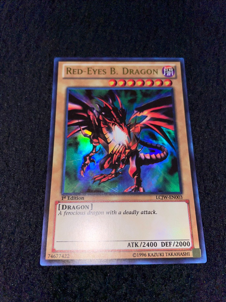 🔥YUGIOH • RED-EYES B. DRAGON • ULTRA RARE • LCJW-EN003 • 1ST EDITION • VLP🔥 Card Sleeve Included + Top Loader • VERY LIGHTLY PLAY CARD • Authentic Konami USA Version YOU ARE GUARANTEED TO GET THE CARD NAMED IN THE TITLE. Thank you.