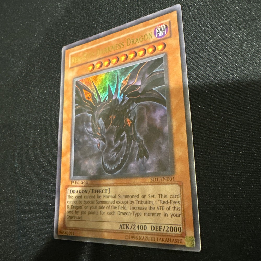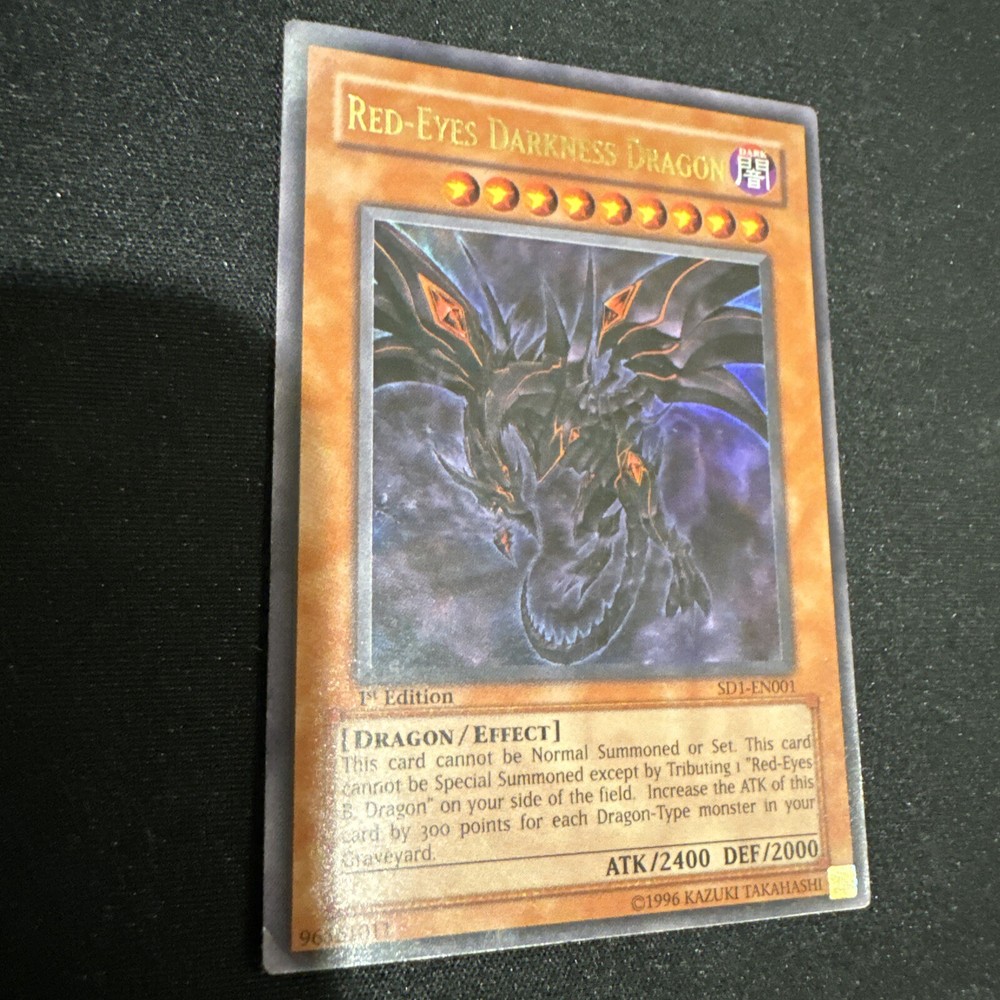 🔥 YUGIOH • RED-EYES DARKNESS DRAGON • ULTRA RARE • SD1-EN001 • 1st • NM 🔥 No returns/refunds Will be shipped out properly! *REVIEW PHOTO'S BEFORE PURCHASE FOR YOUR OWN PERSONAL CONDITION VERIFICATION* Check out my other listings!