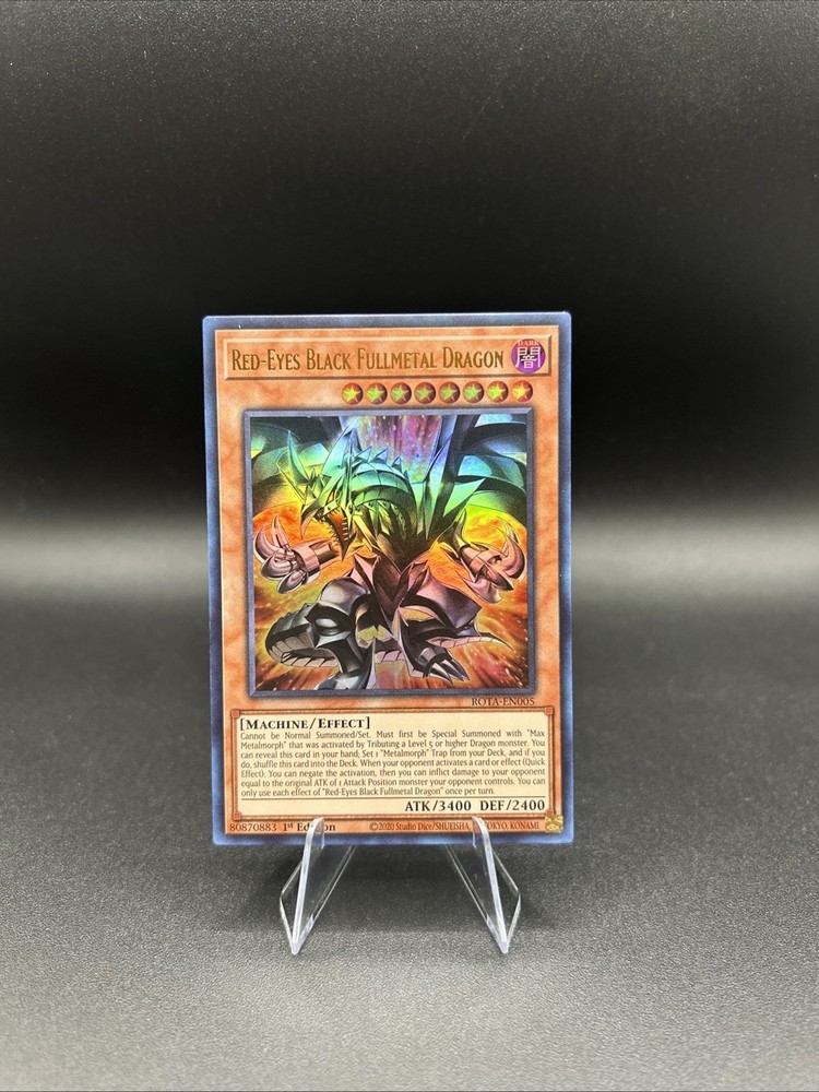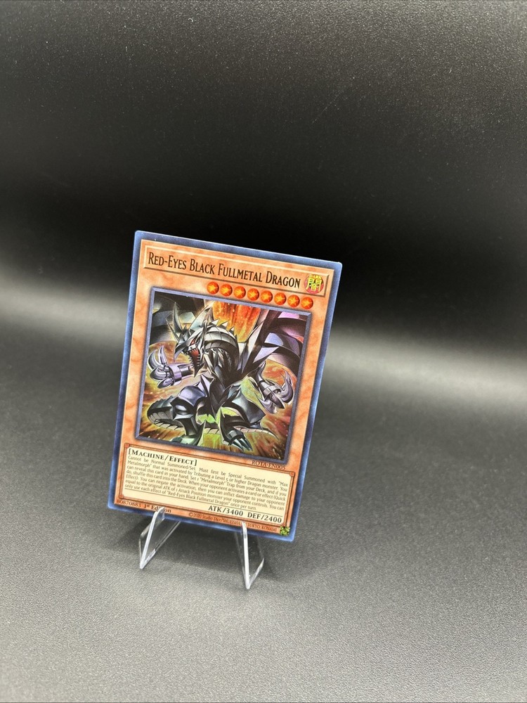 The YU-GI-OH! Red Eyes Black Fullmetal Dragon card is an Ultra Rare collectible card from the Yu-Gi-Oh! TCG. Part of the - Yugi - set, this card features dragons and is highly sought after by collectors and players alike. With its rarity and appeal within the trading card game community, this card is a valuable addition to any card collection.