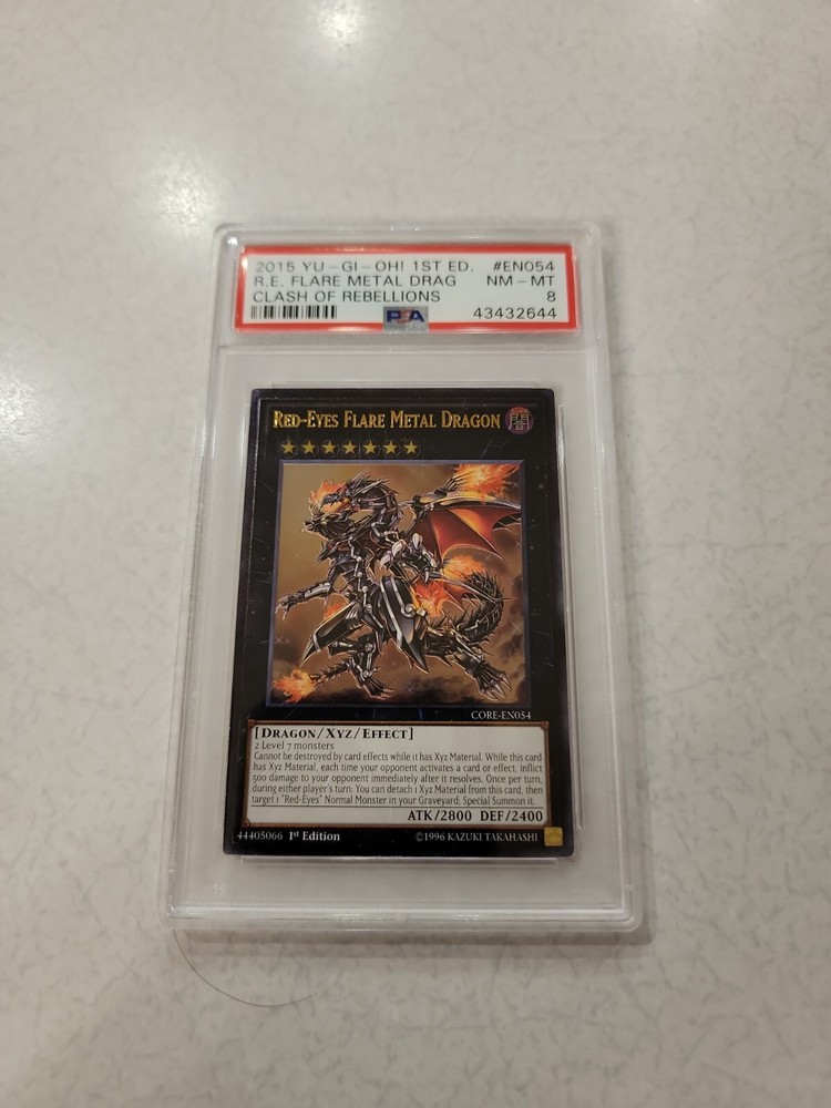 YUGIOH - Red Eyes Flare Metal Dragon CORE-EN054 1st Ed Ultimate Rare PSA 8 NM-MT. No international shipping.