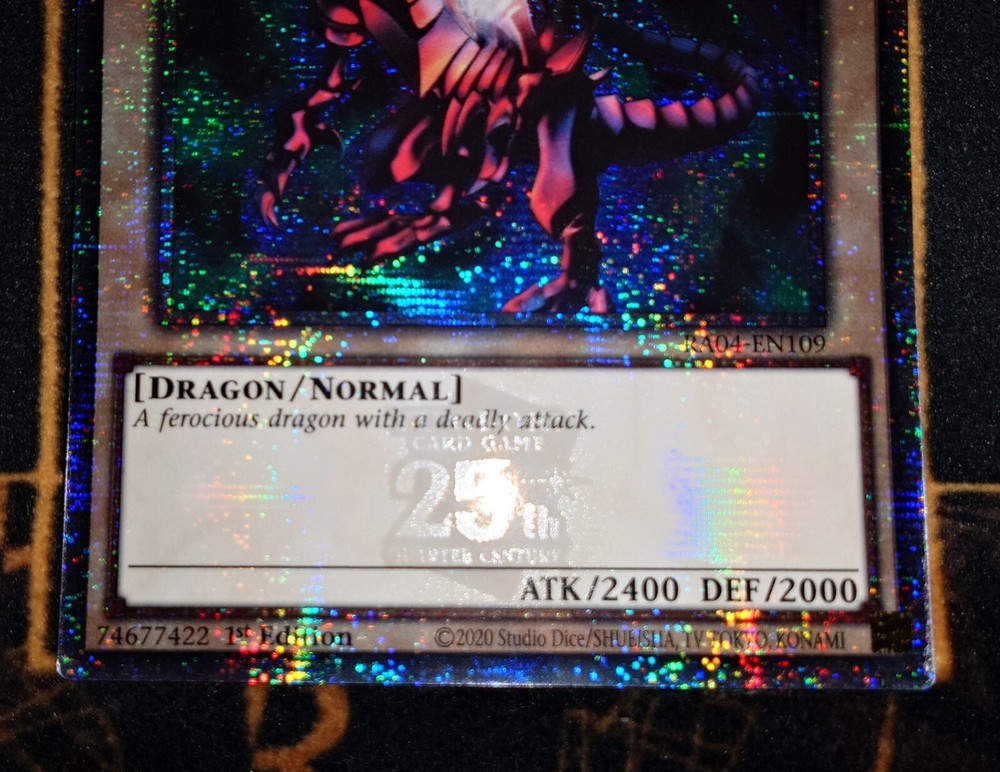 1 Quarter Century Secret Rare Red-Eyes Black Dragon (RA04-EN109) 1 st Edition Condition: Near Mint Condition Cards will be sent with a rigid toploader for maximum protection Please feel free to take a look at my other items =) Please contact me if you require additional photos or have any questions about the item. Please let me know if you are not completely satisfied with your purchase before leaving feedback so we can attempt to resolve the situation. Thanks for looking =]