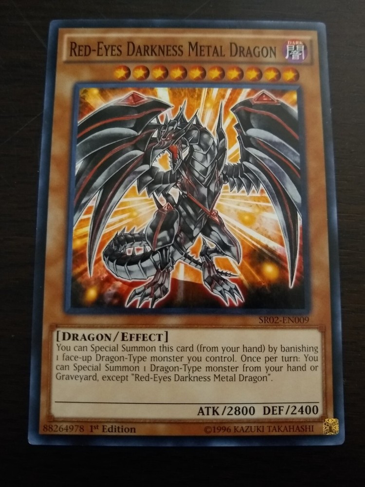 YU-GI-OH! Trading Card Game. Red-Eyes Darkness Metal Dragon. SR02-EN009. 1st Edition Card. This Card is Near Mint. Check Pics for Condition. Ships USPS. All Cards Will Be Shipped in a Penny Sleeve and a Premium Semi-Rigid Card Holder for Protection.