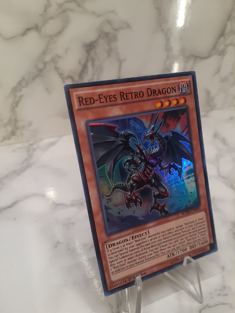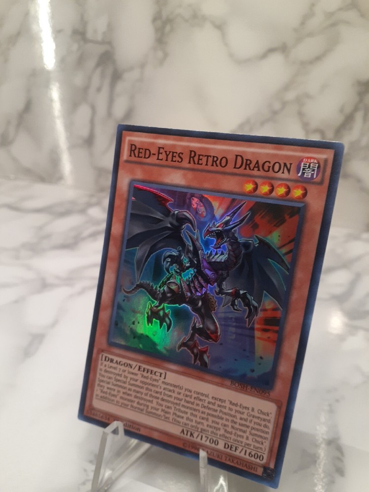 YUGIOH Red-Eyes Retro Dragon BOSH-EN095 1st edition Super Rare VLP/NM. Please look at all photos they are part of the description!!!! Also I have many other yugioh cards for sale please take a look thank you!!!!